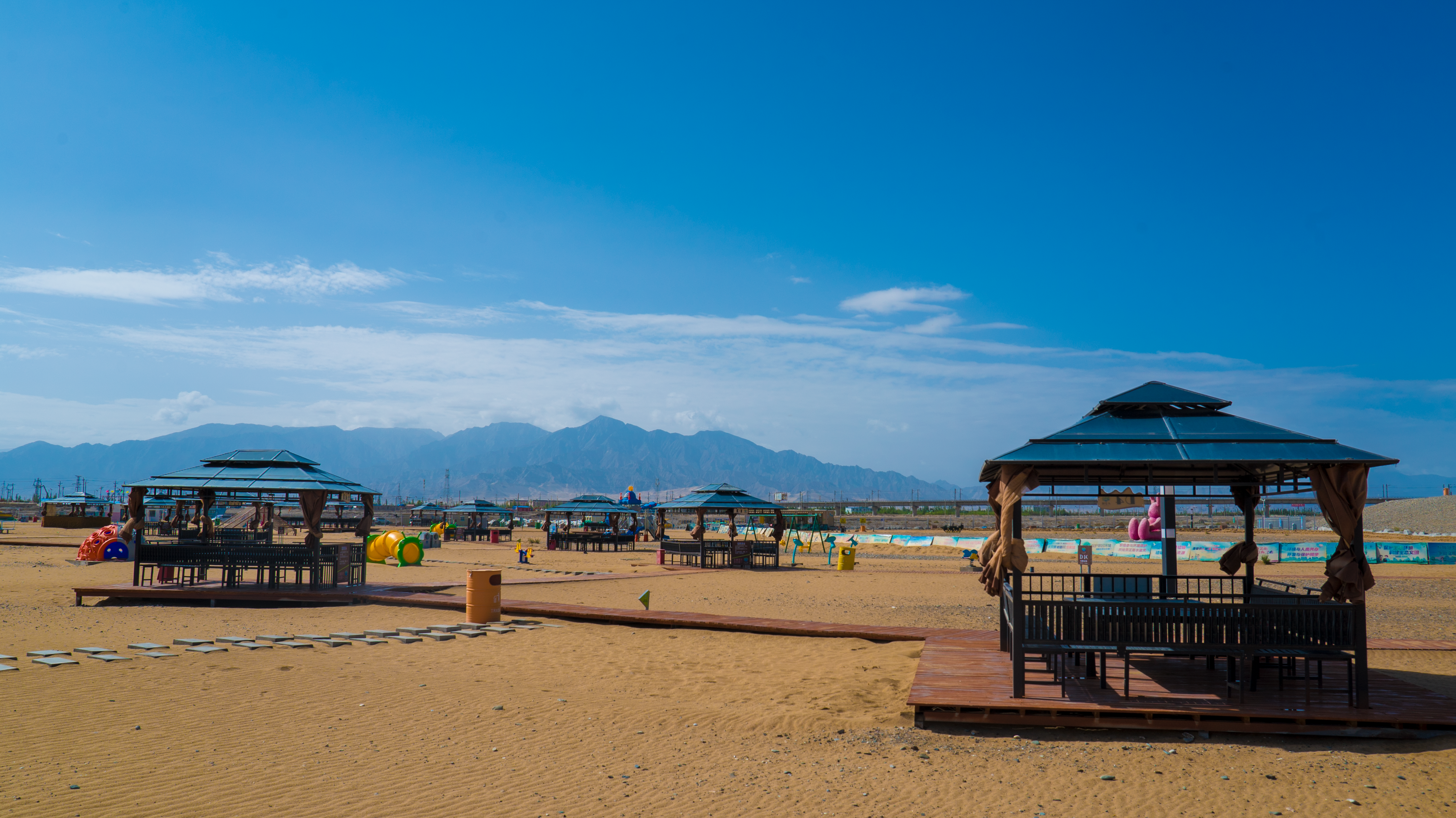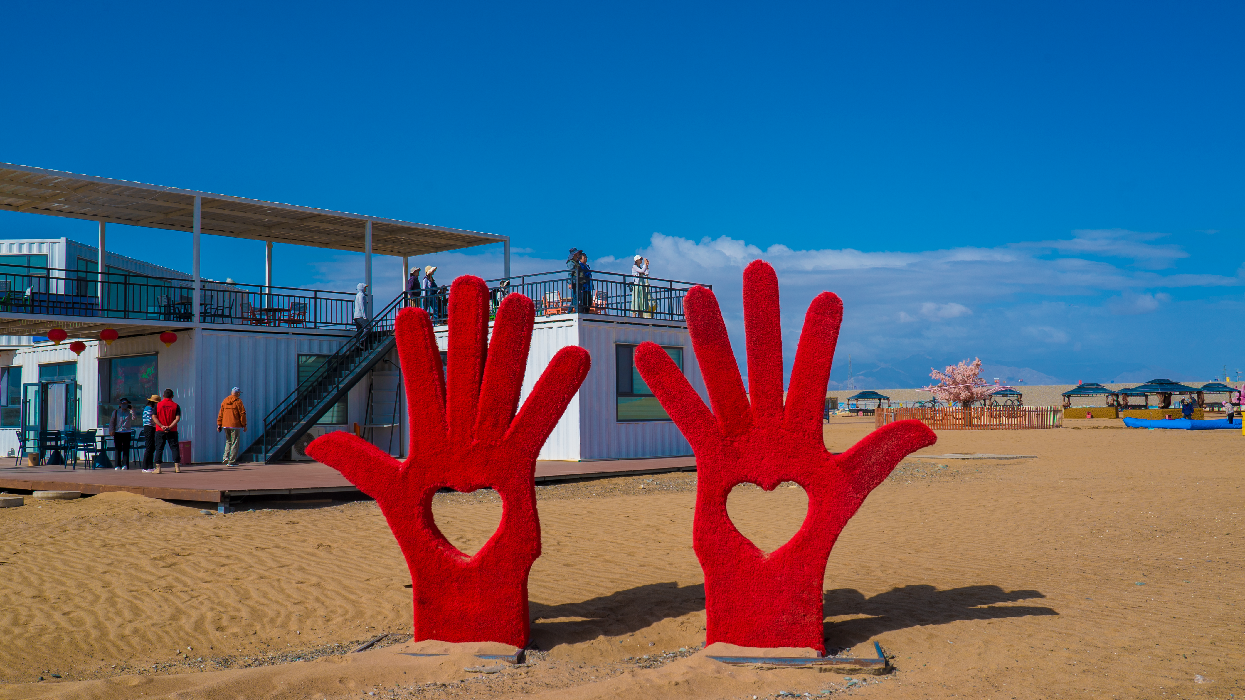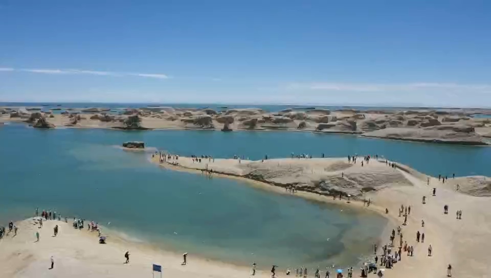 在格尔木的戈壁荒原上,居然藏着一片‘小三亚’——六子湖。水清沙软,棕榈成荫,远处是巍巍昆仑雪山。大自然没给的,格尔木人自己造出来了。沙漠、雪山、沙滩、湖水同框,这画面,也只有青海能给你。