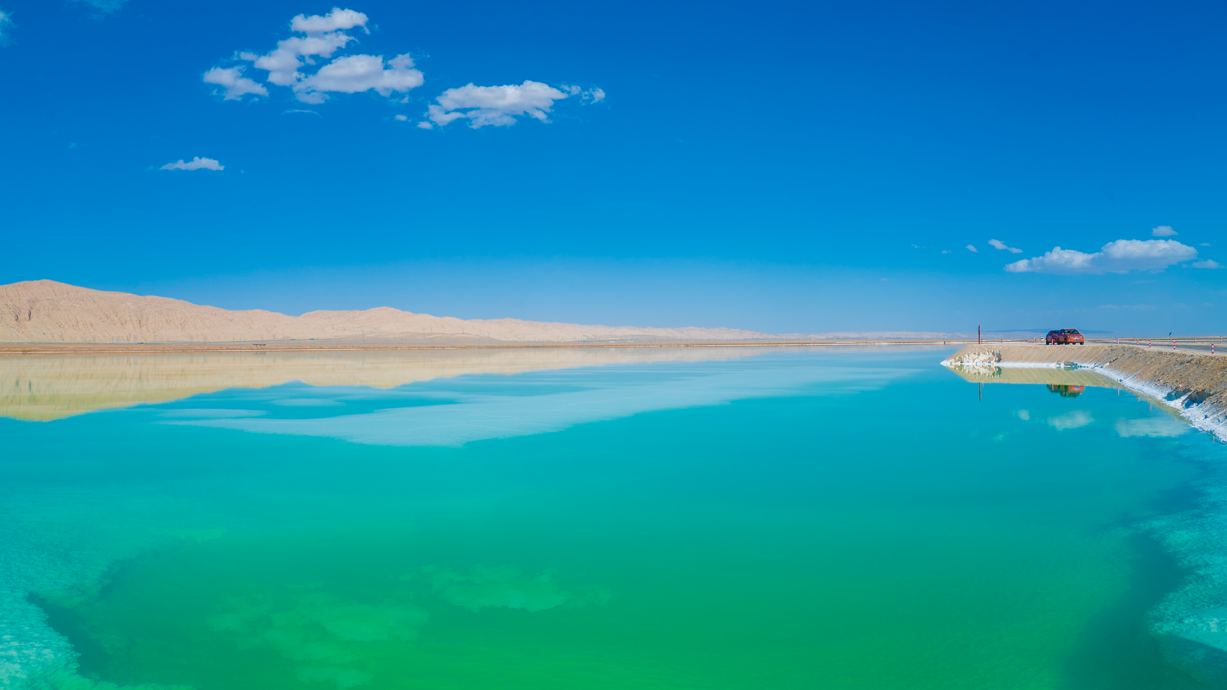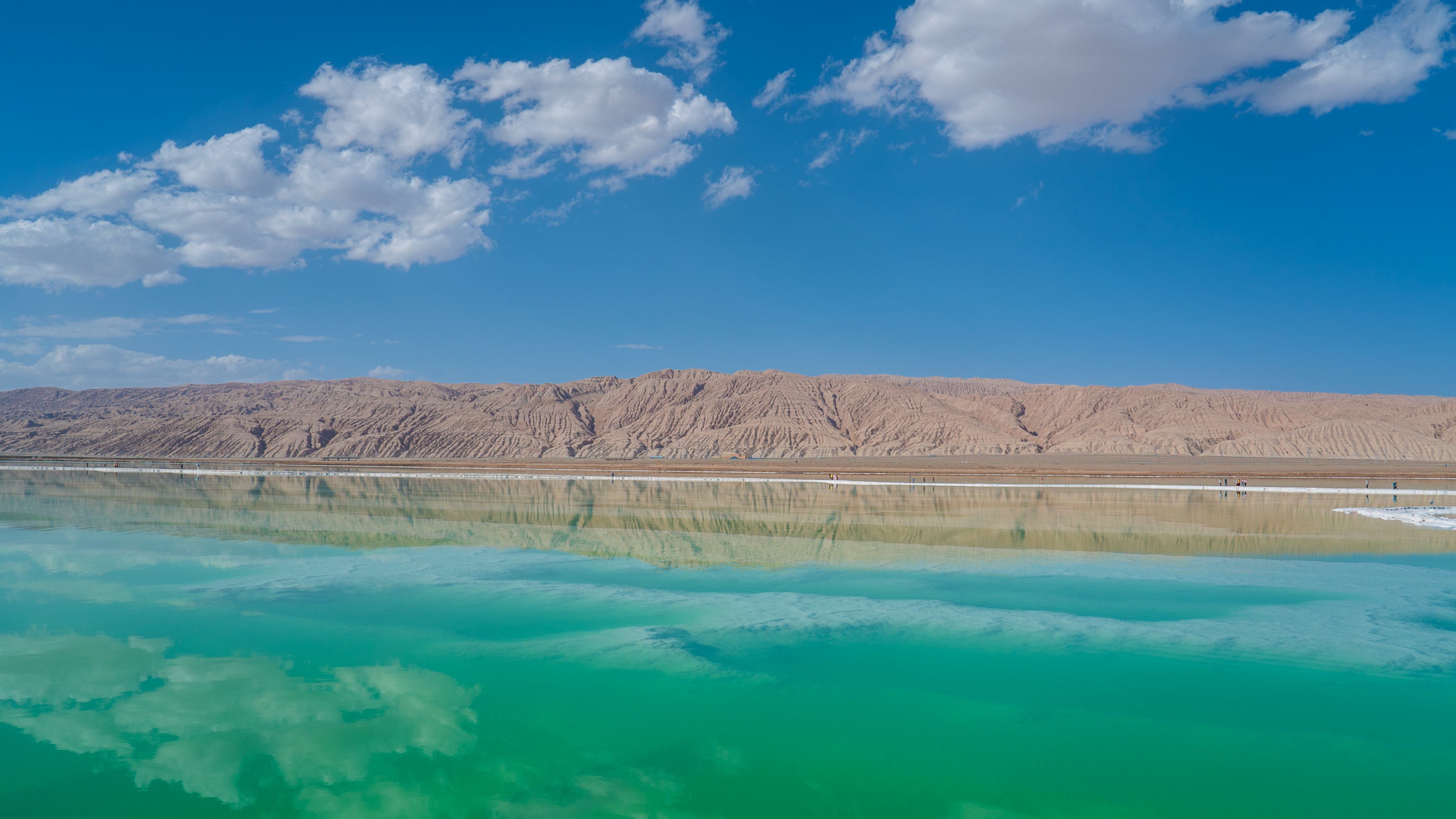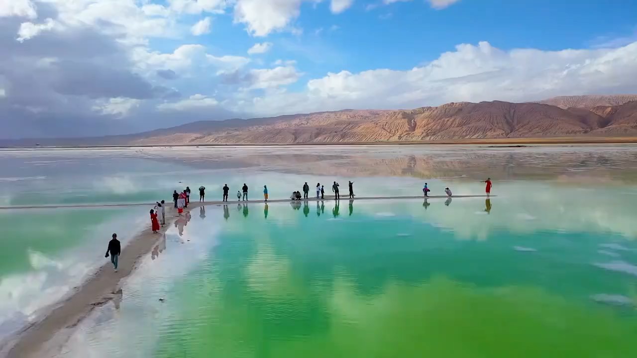 见过青海湖的辽阔,也见过茶卡的纯净,但翡翠湖的绿,是那种会突然击中你的美——在戈壁深处,一片片散落的绿,像大地的眼泪,又像天使的宝石。