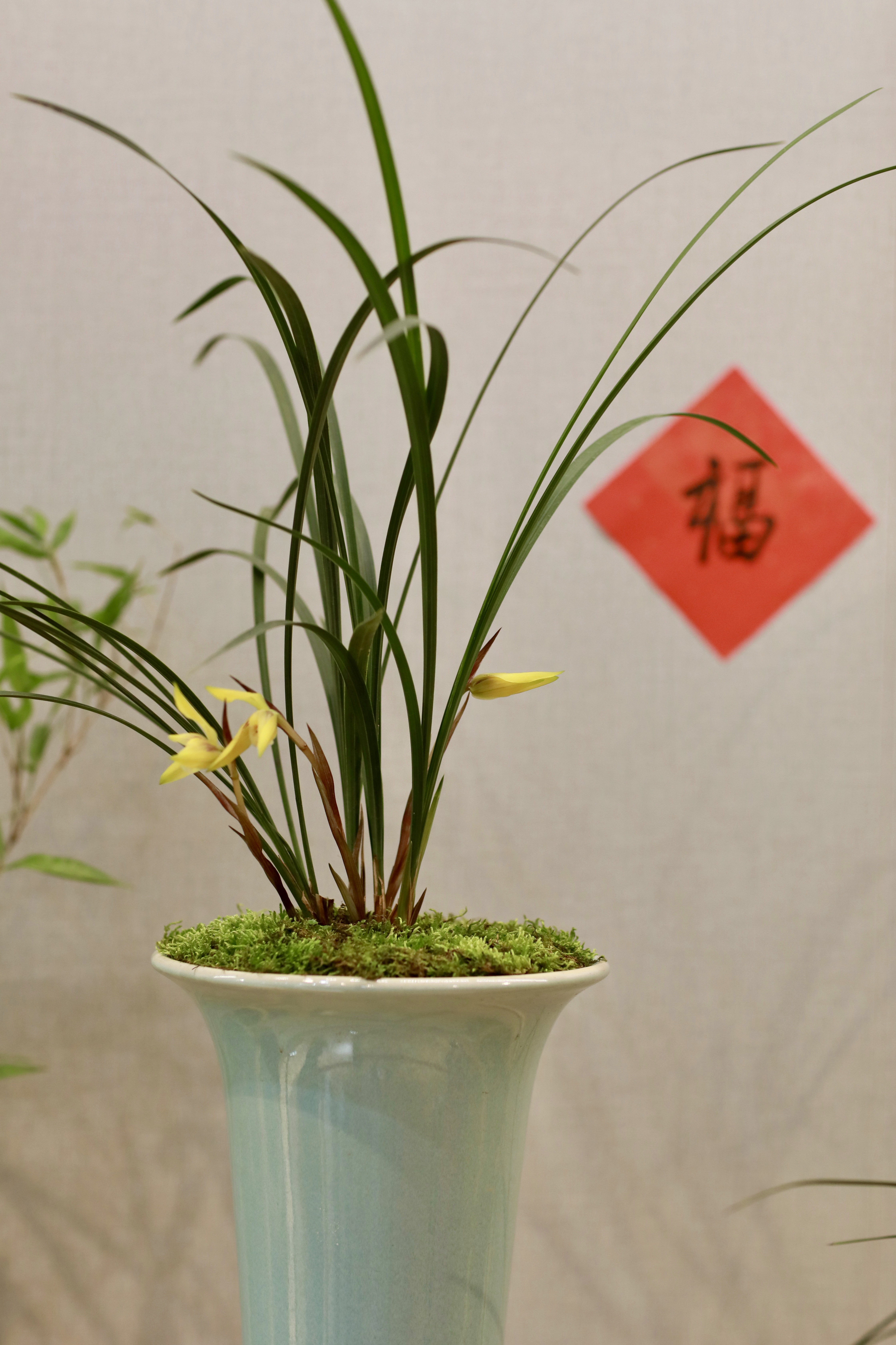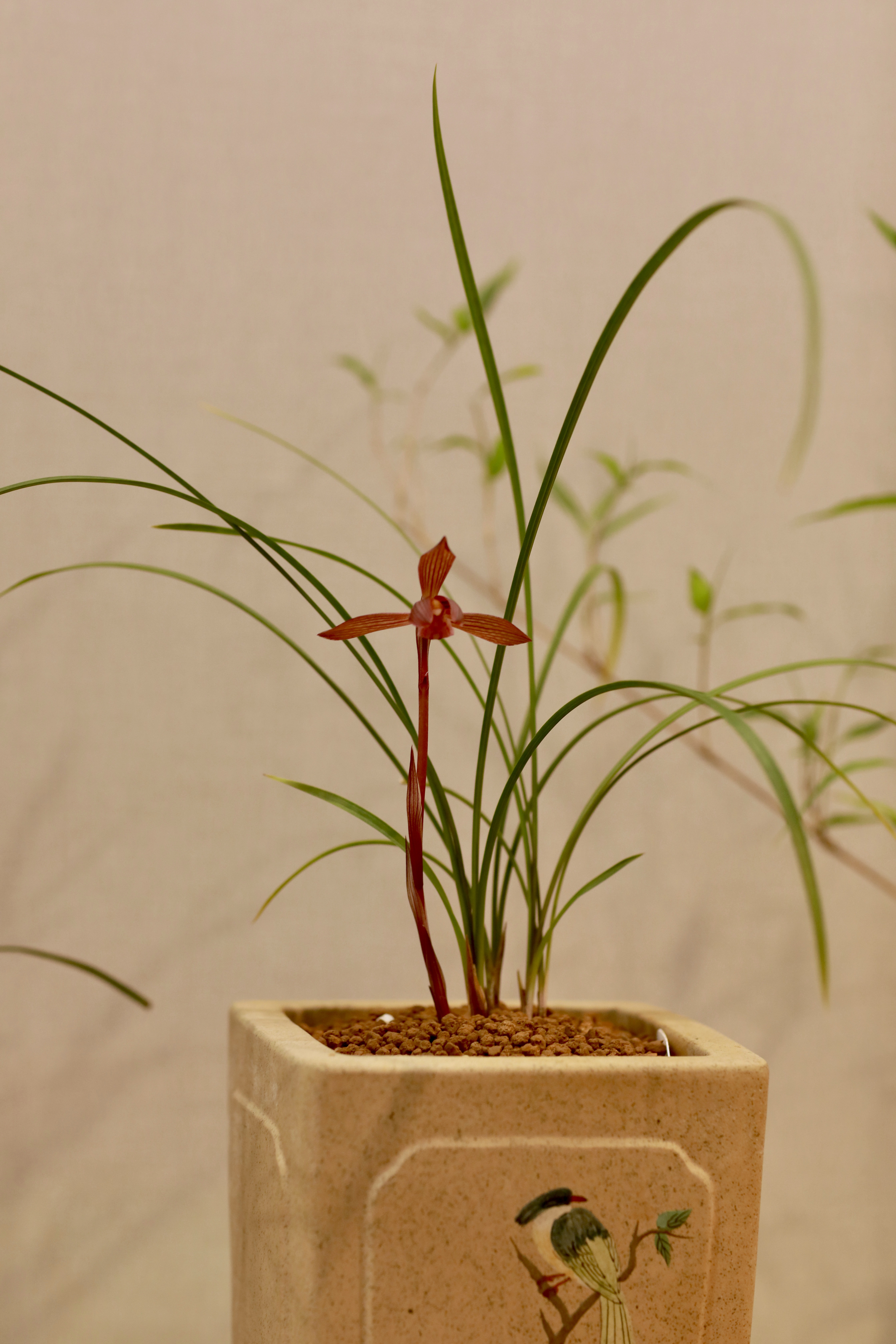 手培兰蕙两三栽,日暖风微次第开。 坐久不知香在室,推窗时有蝶飞来。