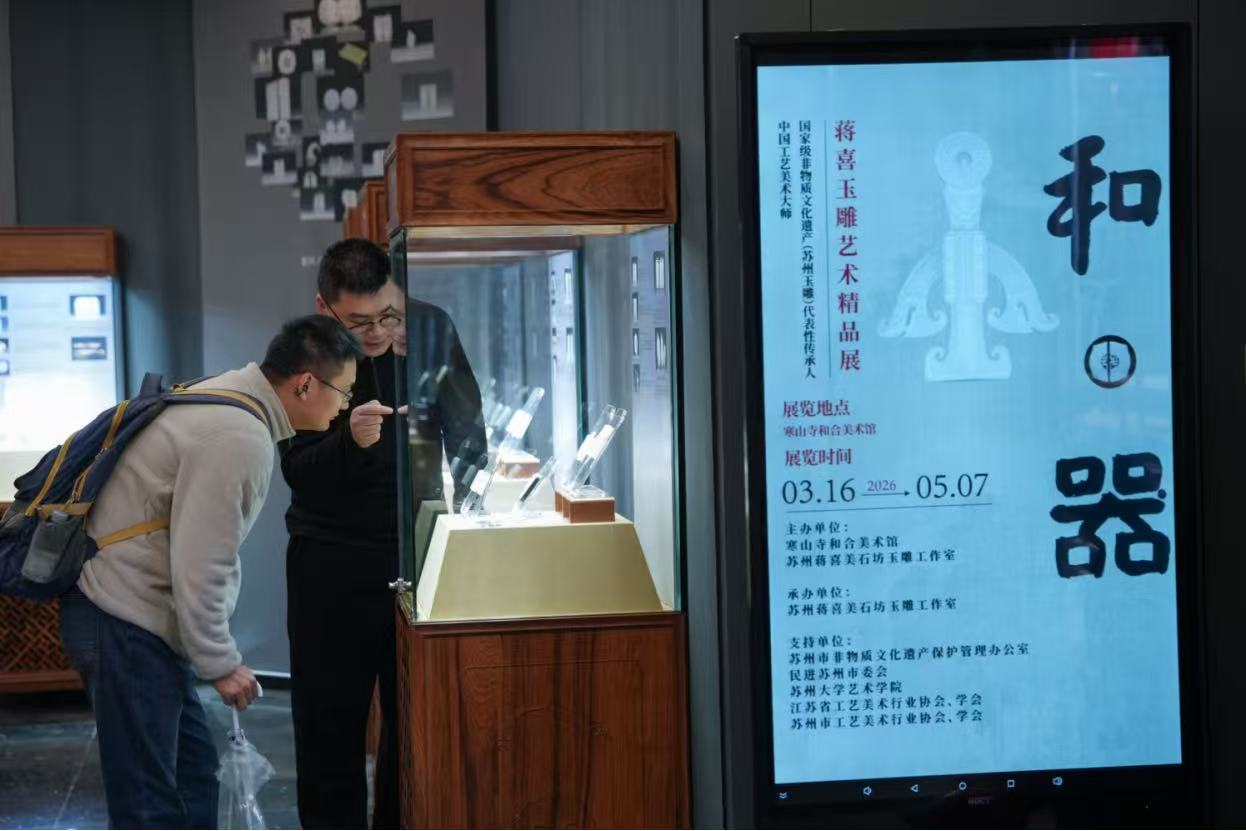 “和•器:蒋喜玉雕艺术精品展”在苏州寒山寺和合美术馆正式开展 2026年3月16日,由寒山寺和合美术馆、苏州蒋喜美石坊玉雕工作室主办的“和•器:中国工艺美术大师、国家级非物质文化遗产(苏州玉雕)代表性传承人蒋喜玉雕艺术精品展”在寒山寺和合美术馆正式对公众开放。 本次展览得到了苏州市非物质文化遗产保护管理办公室、民进苏州市委会、苏州大学艺术学院、江苏省工艺美术行业协会、学会,苏州市工艺美术行业协会、学会等重要单位的共同支持。 展览以中国工艺美术大师、国家级非物质文化遗产(苏州玉雕)代表性传承人蒋喜先生的玉雕艺术精品为核心,集中呈现其四十余年来在玉雕艺术领域的创作成果。展览紧扣“和”这一主题,以玉雕艺术为载体,深入探索中华“和”文化的深厚内涵与当代价值。 展出的作品充分体现了“料、技、艺”三者的和合统一,在尊重玉料天然特质的基础上,通过精湛的雕刻技艺展现工艺之美,以深厚的文化修养实现创作意境的升华。这些作品融合了传统文化中丰富的“和”思想解读以及当代江南文化中的和谐理念与审美思考,展现出苏州玉雕作为非物质文化遗产的活态传承与创新发展。 展览选址寒山寺和合美术馆,巧妙地将玉雕艺术与寺院“和合”文化精神相结合,创造了传统工艺与宗教文化深度对话的独特场域。这一空间与艺术的融合,为观众提供了理解“和”文化多元内涵的新视角。 本次展览将持续至2026年5月7日,期间将展出蒋喜先生不同时期的代表性作品,系统呈现其艺术发展脉络与创作特色。展览旨在通过玉雕这一传统艺术形式,让观众感受“和”文化在当代社会的现实意义,推动非物质文化遗产的保护与传承,促进传统工艺与现代审美的融合。 通过本次展览,观众不仅可以欣赏到苏州玉雕的精湛工艺,更能深入体会“和”文化所蕴含的东方智慧,在欣赏艺术之美的同时,感受内心深处的宁静与和谐。