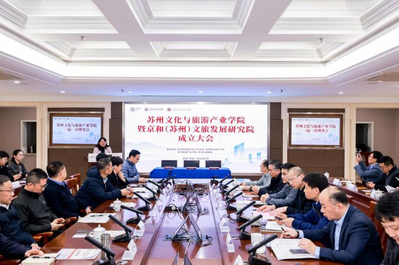 苏州文化与旅游产业学院暨京和(苏州)文旅发展研究院正式成立 3月19日,苏州文化与旅游产业学院暨京和(苏州)文旅发展研究院成立大会在苏州职业技术大学成功举办。苏州市文广旅局副局长曹俊,苏州职业技术大学副校长张军、王峰,北京京和文旅发展研究院院长范周,苏州市旅游文化产业协会会长曲雄伟等出席仪式,苏州本土文旅企事业单位及国内相关行业机构代表齐聚现场。 该学院在苏州市委宣传部、市社科联、市文广旅局指导下,由北京京和文旅发展研究院、苏州市旅游文化产业协会、苏州职业技术大学携手苏州博物馆、高新旅游产业集团等数十家苏州骨干文旅企事业单位联合组建、资源共享,以“构筑校企命运共同体”为宗旨,深度对接苏州十大板块文旅产业布局,紧扣苏州文旅数字化转型与江南文化活化利用趋势,聚焦文旅智慧管理、文化遗产活化、文创IP开发、非遗技艺传承等方向开展人才培养,全力破解文旅人才供需结构性矛盾,构建苏州文旅政产学研用协同发展新生态。 当天,理事会审议通过产业学院章程,选举产生了理事长单位、副理事长单位及运营团队,并举行了产业学院共建签约仪式。同时,邀请20余位国内文旅领域知名专家、领军人才组成学术研究团队,提供智力支撑。成立大会上,苏州职业技术大学党委委员、副校长张军等领导先后发言提出建设要求,并启动苏州文化与旅游产业学院及京和(苏州)文旅发展研究院揭牌、专家聘任、管理团队聘任及生产性实训基地建设仪式。 同期,还举办了“智汇苏州”学术沙龙2026年第一期活动。京和文旅发展研究院范周教授、上海交通大学刘士林教授分别以《智能经济与文旅融合未来》、《旅游新质生产力与产业集群发展》为题作主旨报告,为苏州文旅高质量发展建言献策。 作为牵头单位,苏州职业技术大学依托旅游管理专业20余年积淀及相关研究平台,持续输送文旅人才。学校相关负责人表示,产业学院的成立是学校扎根苏州、服务十大板块发展战略的重要落地举措,未来将立足苏州全域,精准服务文旅产业升级需求,打造文旅产业“人才蓄水池”、“创新策源地”和“文化新名片”,为苏州文化强市建设和世界级旅游目的地打造贡献职教力量。 (撰稿:张磊玲、戴昕 图片:于莉)