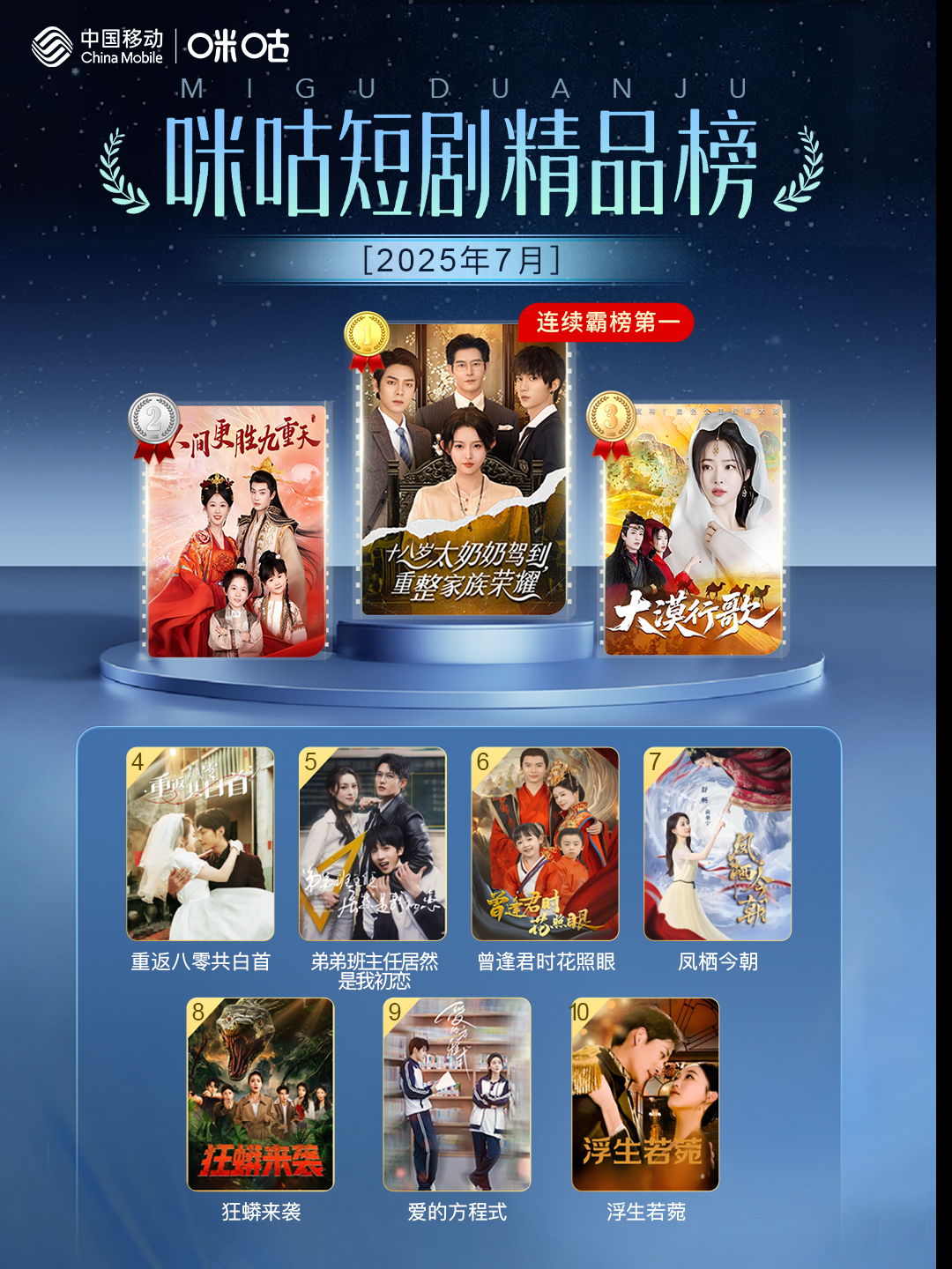 7月短剧太卷了!咪咕短剧精品榜揭晓,品质与热度双重认证,神仙打架,你最爱哪一部? 无广告看短剧上咪咕阅读,开启你的专属追片计划。