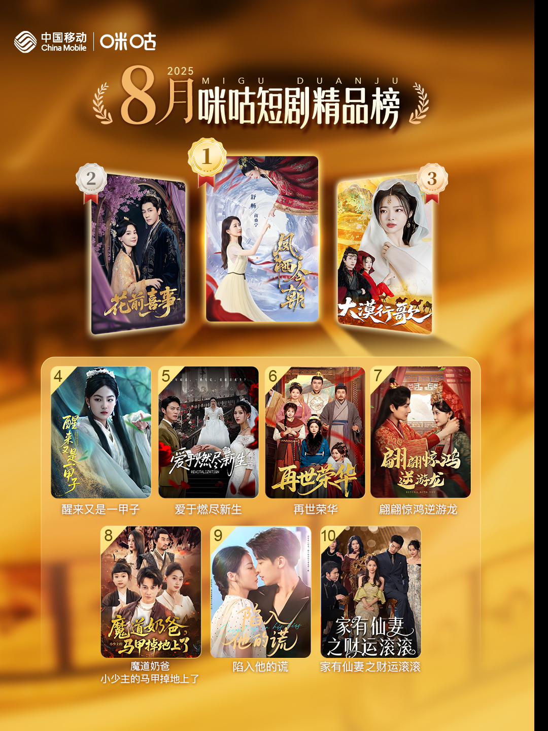 咪咕短剧精品榜9月片单出炉!网友票选的高分经典,宝藏细糠每一部都值得细细品味。免流量看短剧上咪咕阅读解锁你的专属快乐~