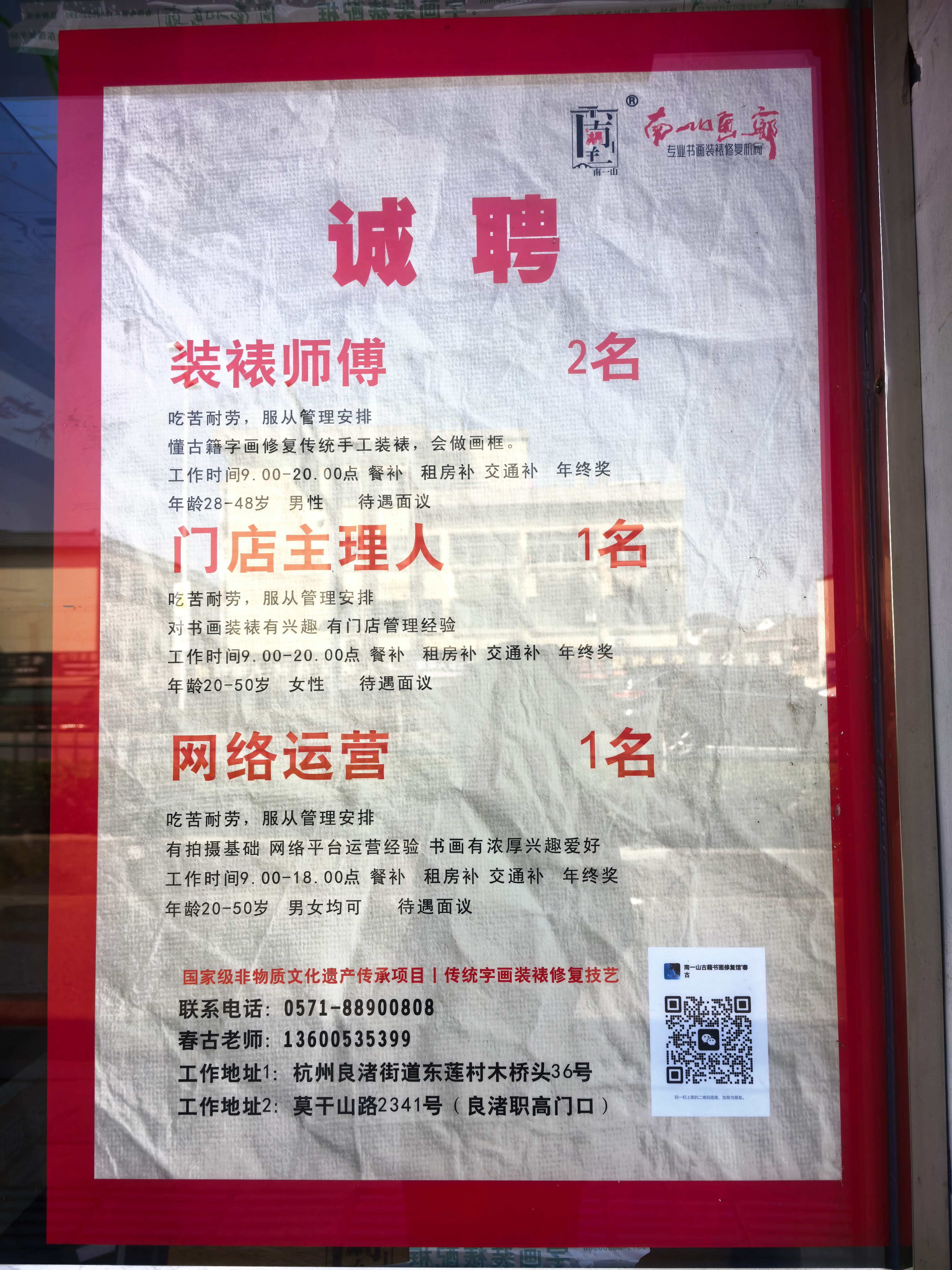 专业学徒带教、非遗技艺授课、定制高端画框/锦绫装裱、藏品长期养护存档、博物馆/拍卖行定向修复合作。南一山文化春古老师#古画修复技艺# #我在良渚修文物# #真实生活记录#