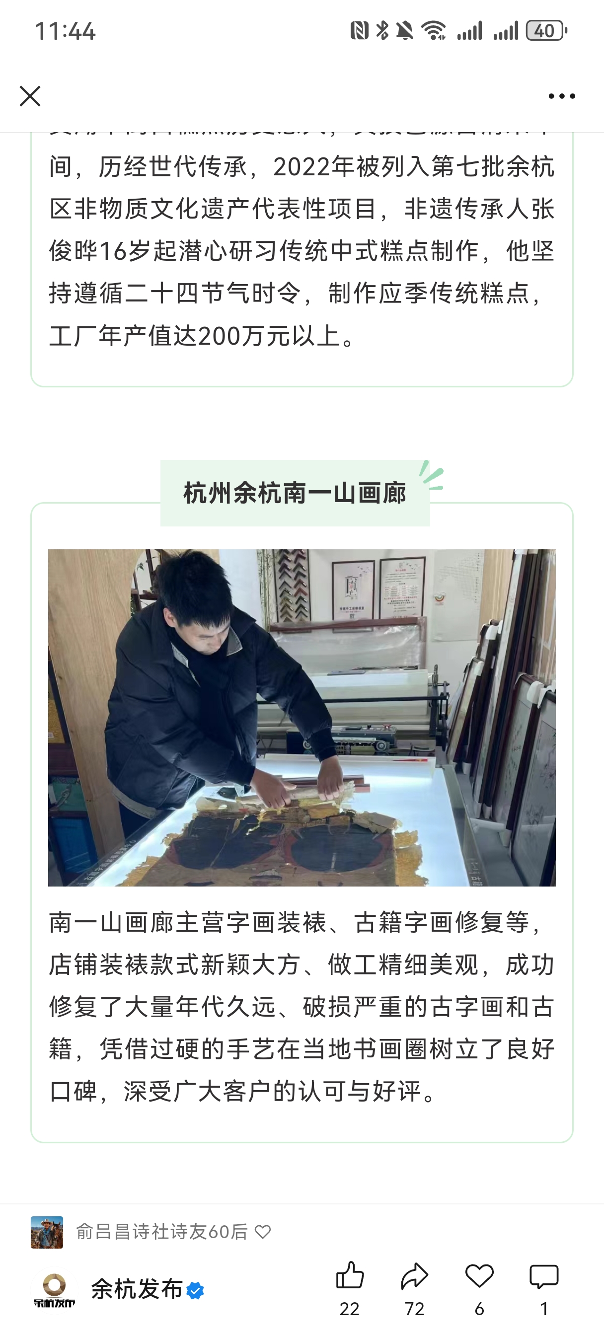 作室为国家级装裱修复技艺平台,立足传统技艺本源,#南一山文化# 南一山文化,长期培养文案人才与社会学员,核心业务涵盖古画修复、古籍修复及传统手工装裱等。