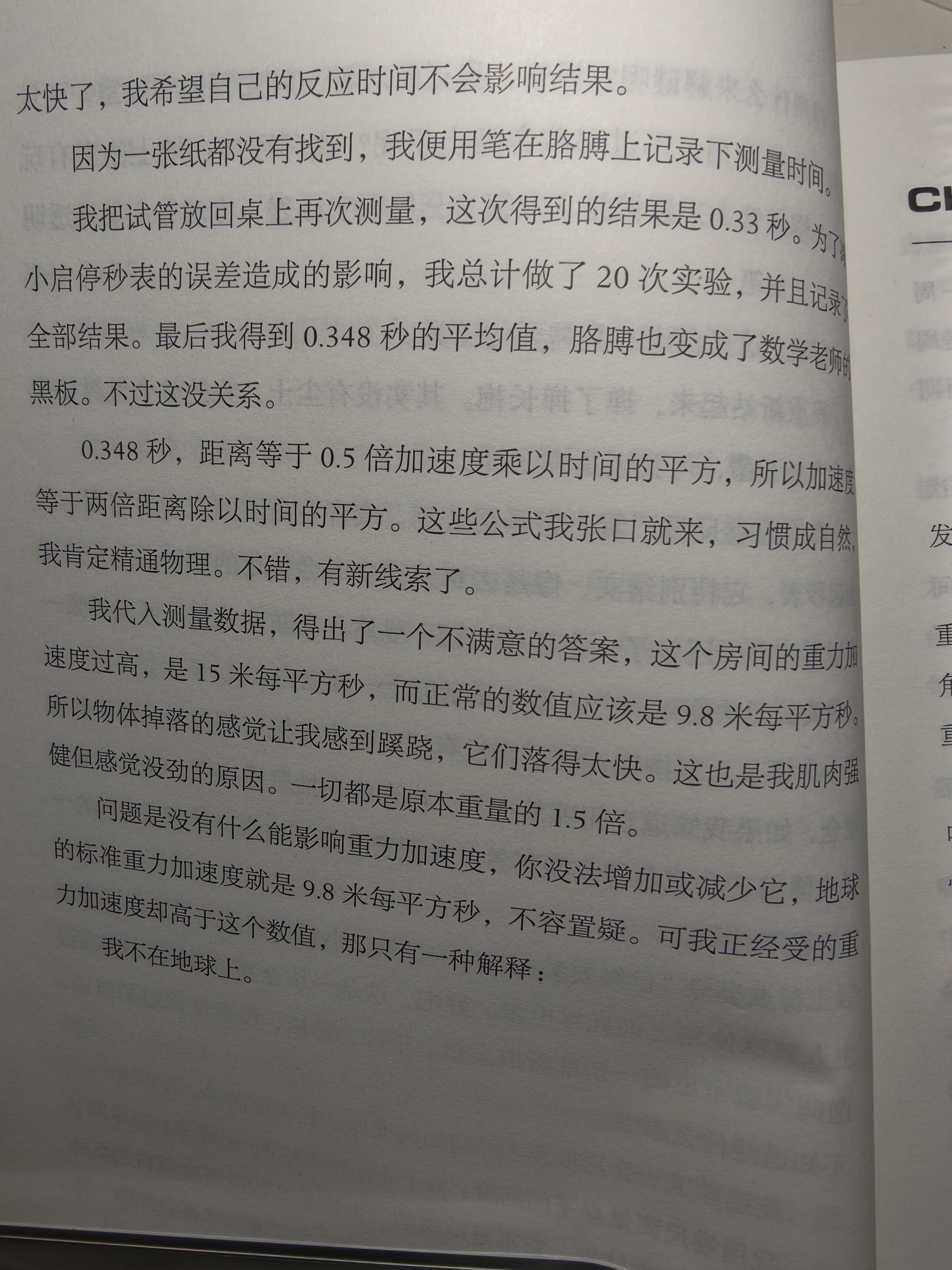 《挽救计划》第一章中用秒表记录物体抛落的时间 ,用物体的距离S=1/2gt2,算出重力加速度不是9.8 得出结论,自己不在地球上。非科学家的脑袋想不出这样的方法和结论。所以作者本人就是物理和轨道力学的专业人士。