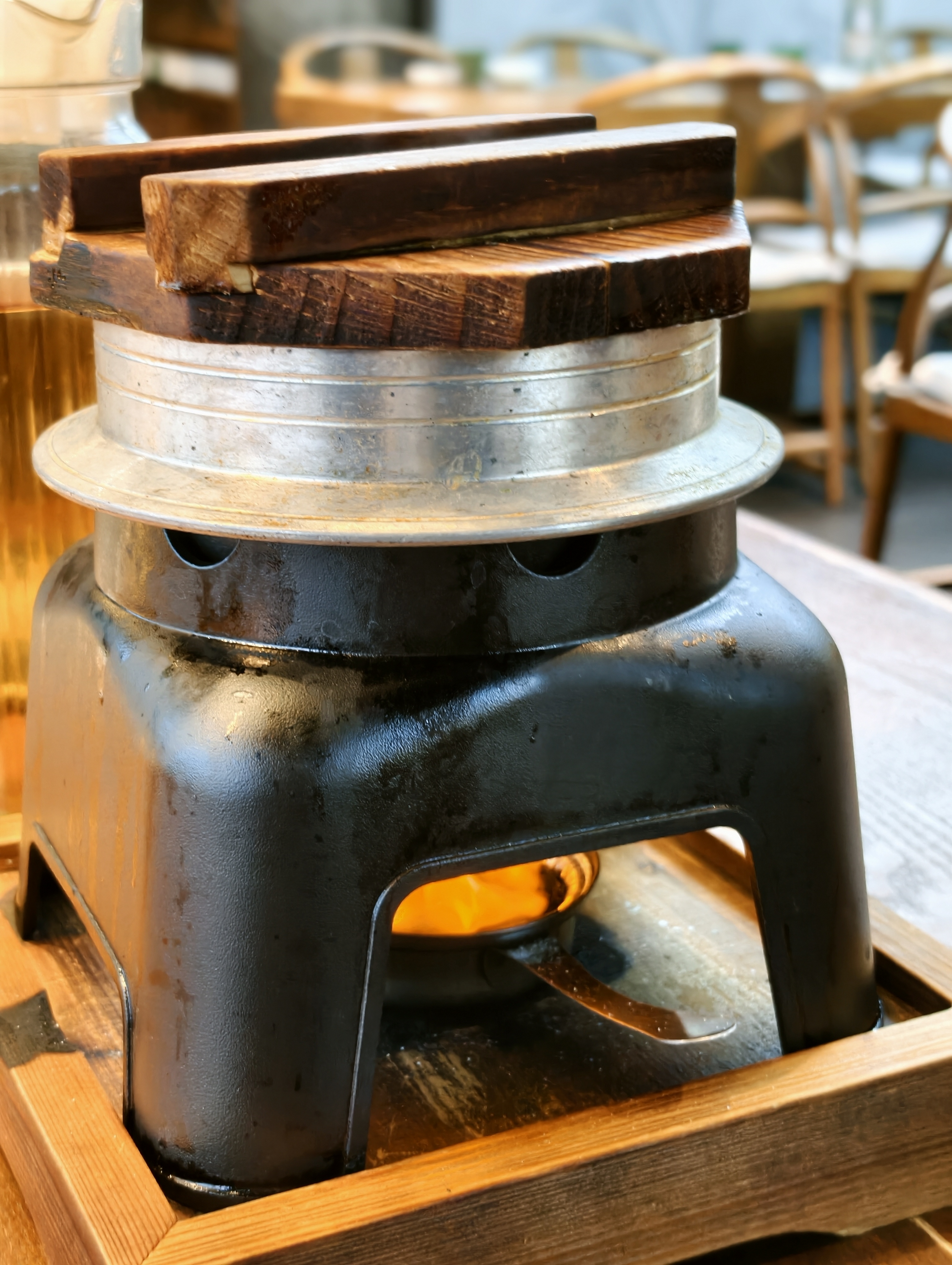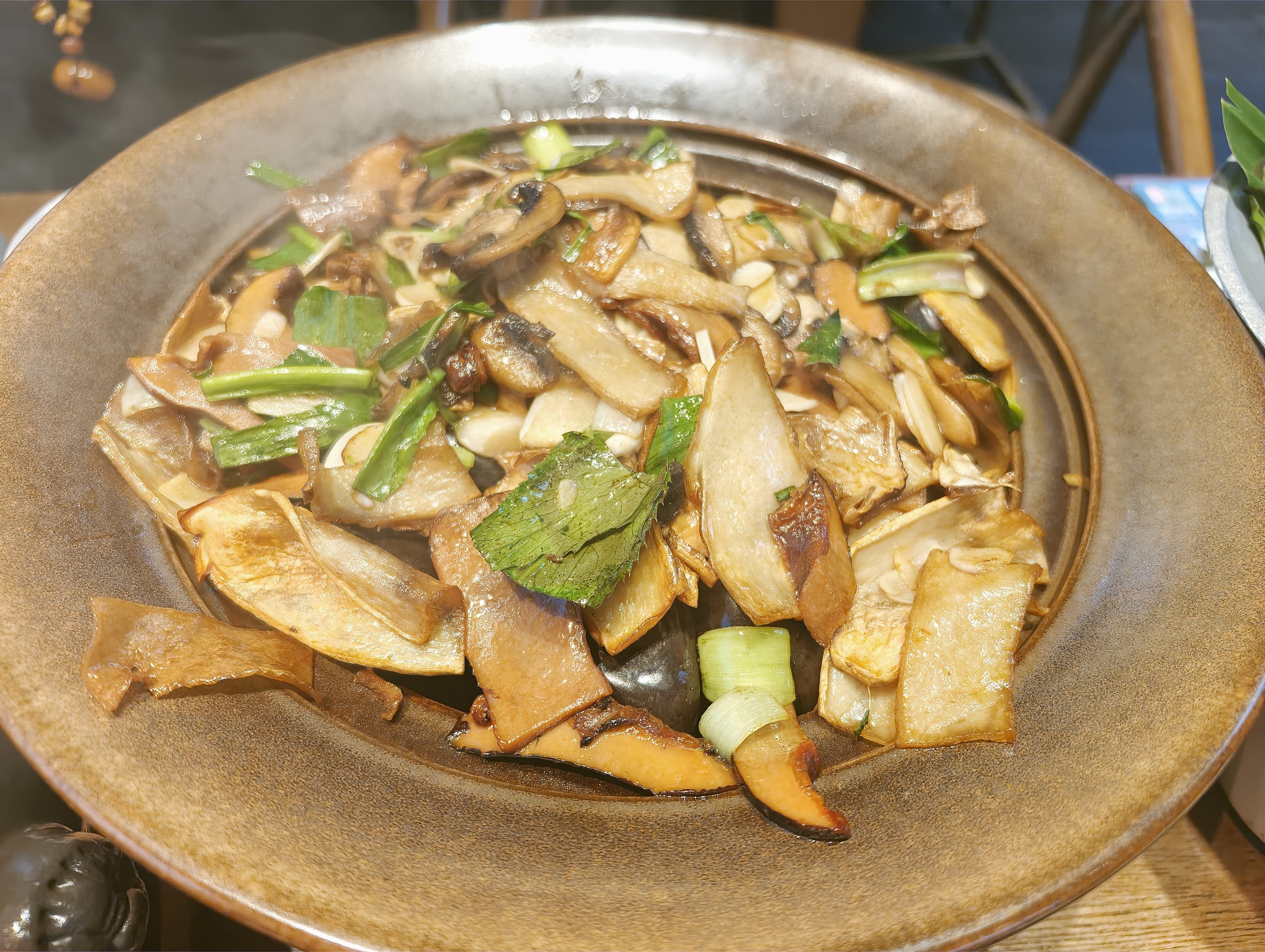 吃个云南菜,好有仪式感。汽锅鸡,配减腻凉拌莴苣丝。黑三剁酒精炉架起,洋芋焖饭架着烧,翻过来有脆香的锅巴。云南肉沫冰川茄子软软糯糯的。最鲜最美味的是炒菇煲,是垫着鹅软石的,每一片都均匀受热,脆鲜的各种菌菇,真正的云南美食。