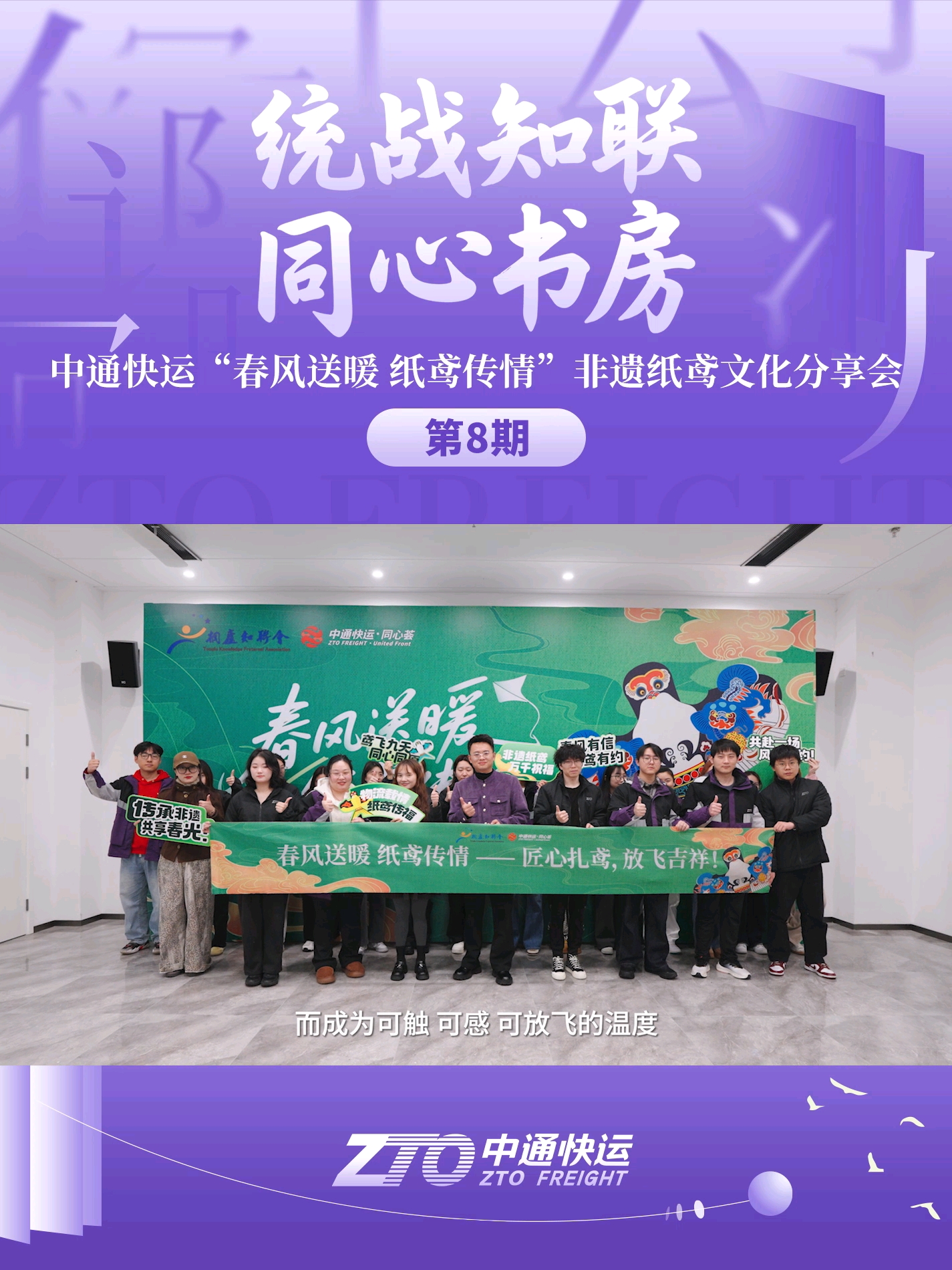 春风送暖,纸鸢传情。中通快运“统战知联·同心书房 ”非遗纸鸢文化分享会圆满举办。在鸢舞春光中传承非遗文化、凝聚同心力量。|《统战知联 同心书房》第8期