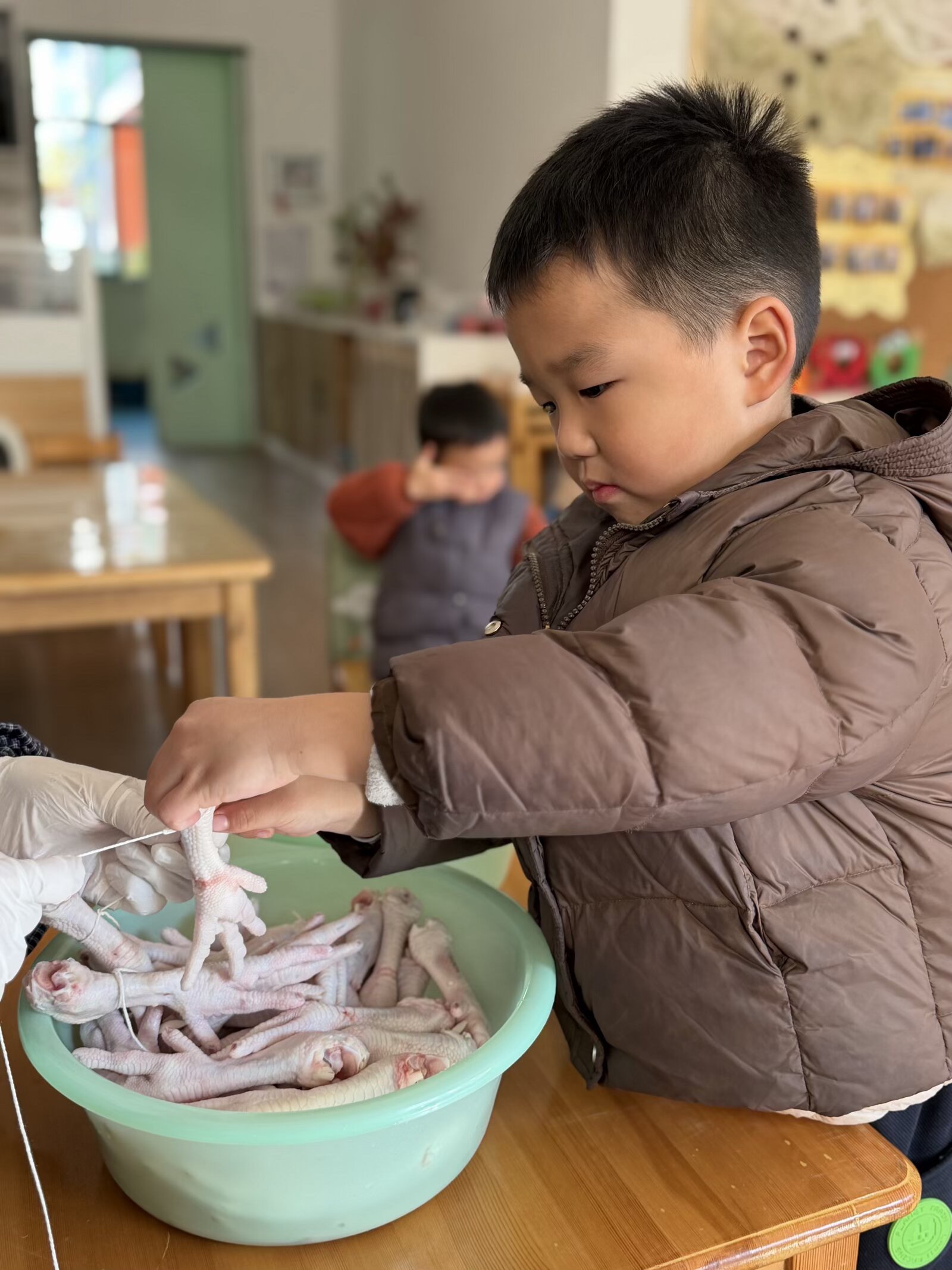 《小小厨房达人,酱香满溢迎新年》在兰亭中心幼儿园小三班的食育课上,宝贝们化身小小厨房达人,正认真地参与酱鸡爪的制作。眼前的小男孩专注地拿起鸡爪,在老师的协助下仔细穿线,准备进行下一步的卤制。 他的眼神里满是好奇与认真,小小的双手稳稳地配合着动作,感受着食材从生到熟的奇妙变化。 这不仅是一次充满趣味的食育体验,更是孩子们在实践中认识食物、学会合作的过程。当酱香在教室里弥漫开来,宝贝们也在亲手制作中,提前感受到了马年新年的热闹与温暖。