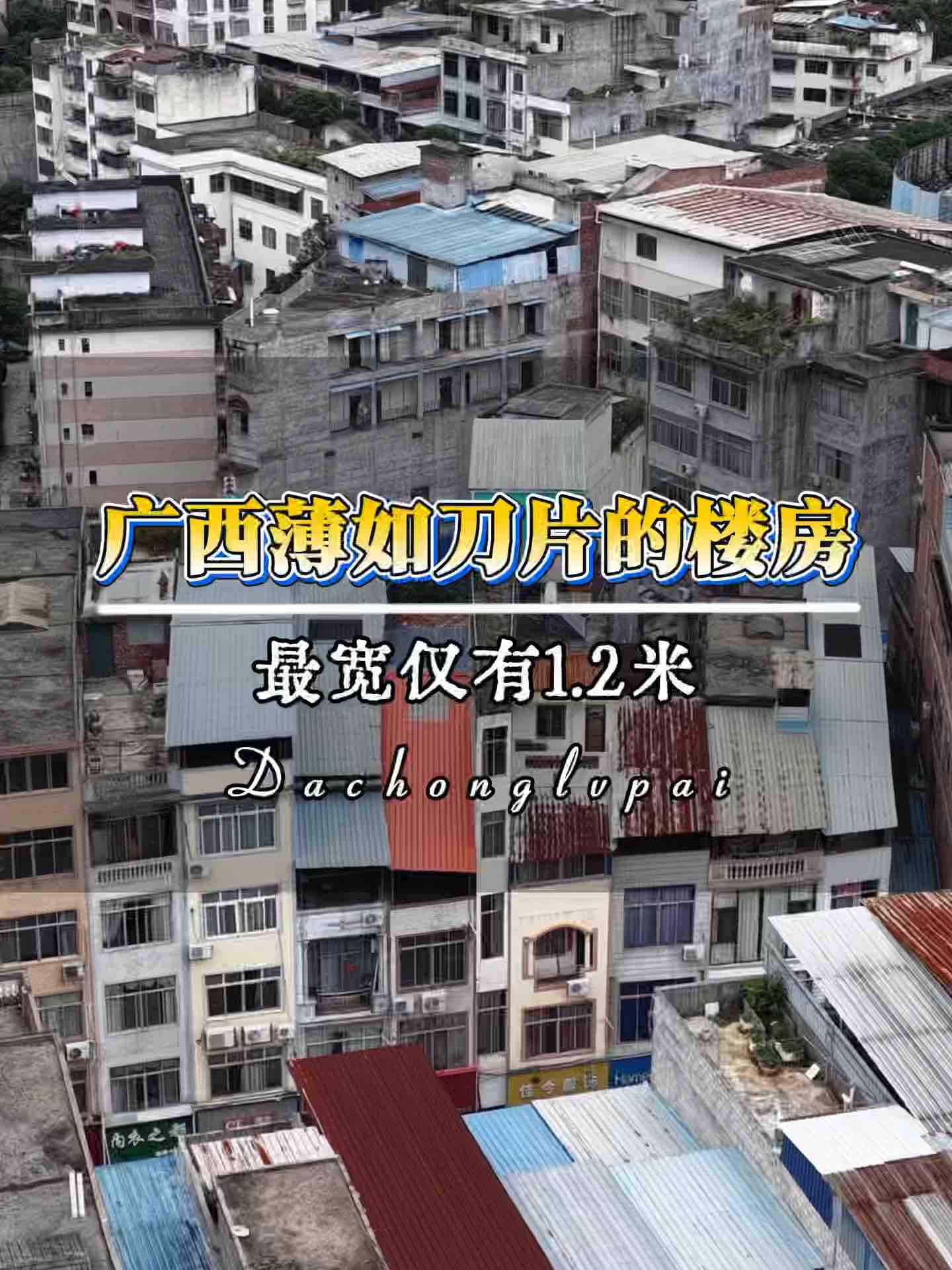 广西崇左最牛的纸片楼,最宽处竟然不到1.5米,真是有人敢建有人敢住,也不知该如何住人?#刀片楼 #纸片楼 #广西#自建房