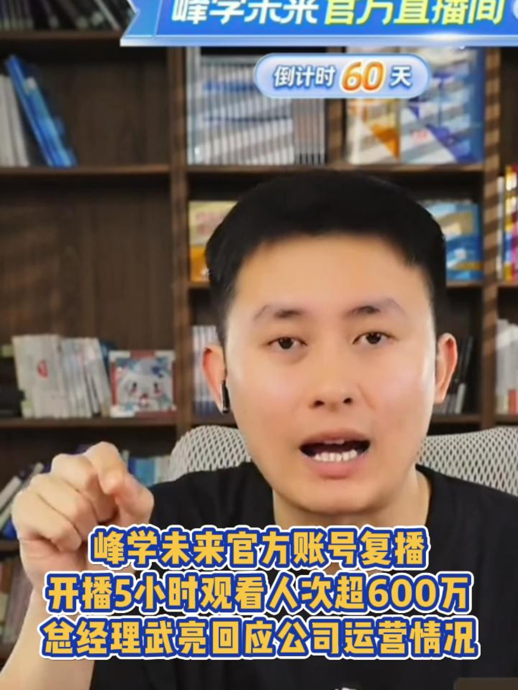 峰学未来官方账号复播,开播5小时观看人次超600万,总经理武亮回应公司运营情况