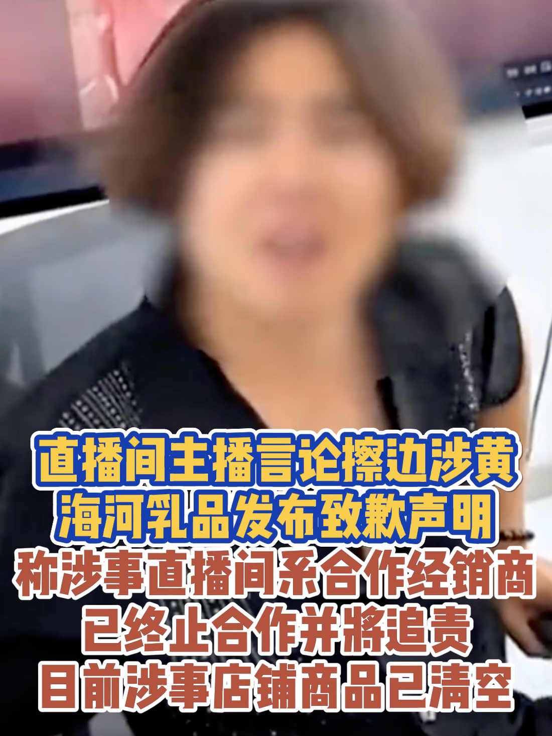 直播间主播言论擦边涉黄,海河乳品发布致歉声明,称涉事直播间系合作经销商,已终止合作并将追责,目前涉事店铺商品已清空