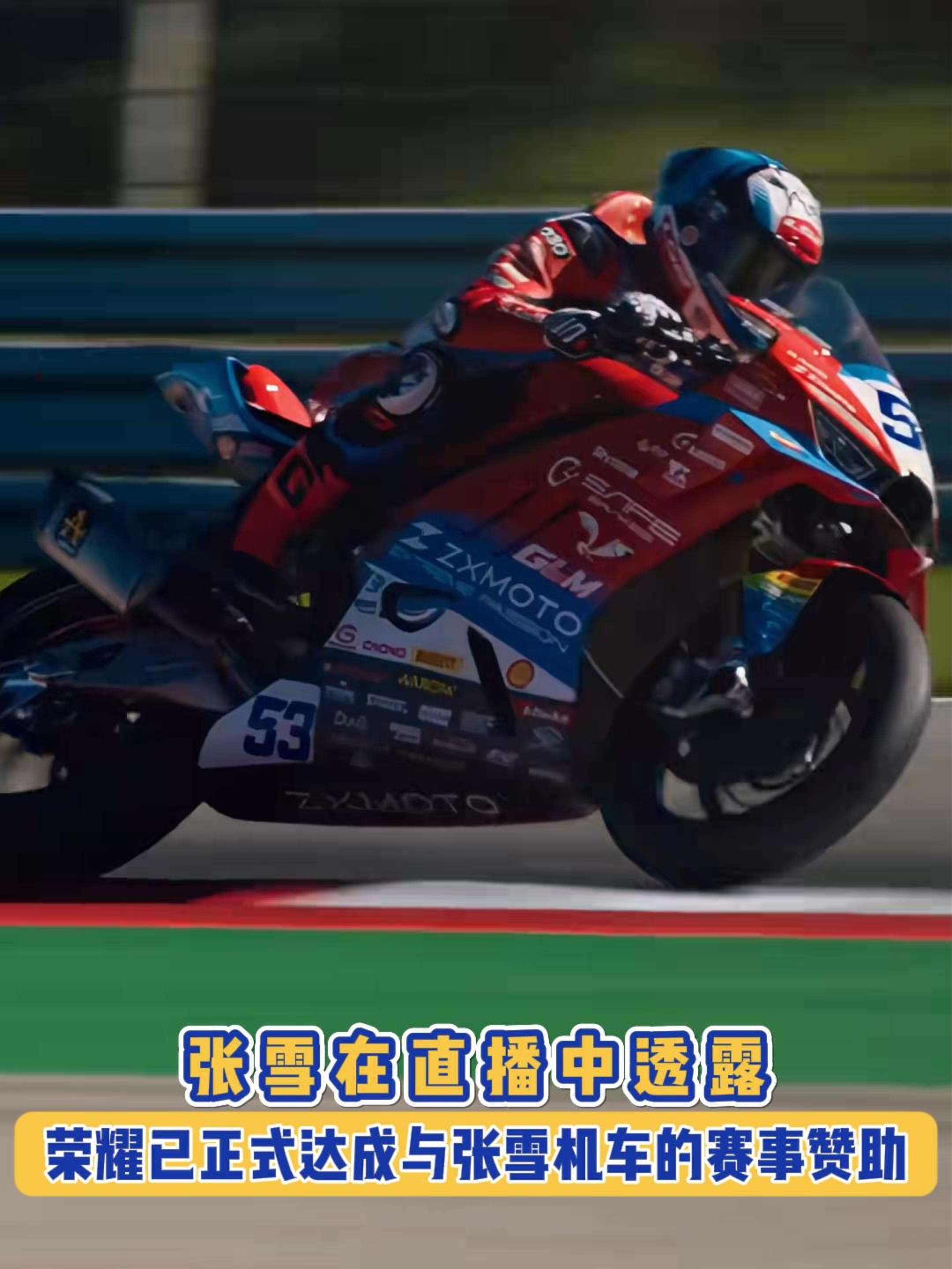 张雪在直播中透露,荣耀已正式达成与张雪机车的赛事赞助