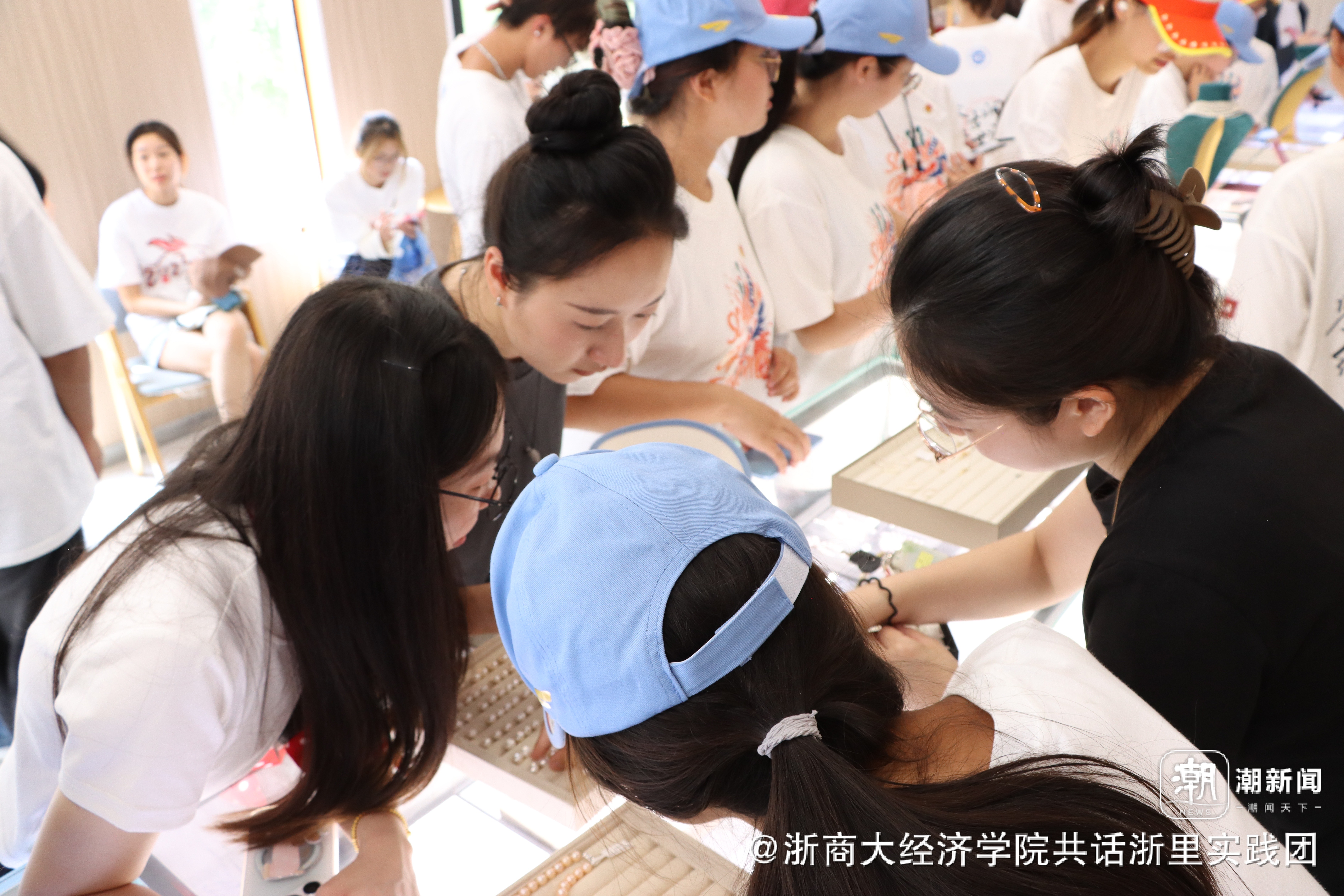 新长乐珍珠 “串” 起共富路:从养殖直播间到文旅新图景 在乡村振兴的浪潮中,新长乐村的珍珠产业正焕发独特光彩。这片以珍珠养殖闻名的土地,凭借优质的水域环境和传承多年的养殖技艺,孕育出圆润饱满、光泽莹润的珍珠珍品。近日,浙江工商大学经济学院“共话浙里发展路,循迹百村新景图”暑期社会实践团走进新长乐村,探寻珍珠产业的振兴密码,通过实地调研、直播助农等方式,见证传统养殖业在科技赋能下的新活力。 历史漫漫 “珠” 光闪耀,探秘途中共 “绘” 灵感 新长乐村文化礼堂内,当地党员干部热心为实践团成员介绍珍珠从养殖、销售、扩大市场、电商直播到形成较为完整的产业链的全过程。 敢为人先,体悟珍珠人的勇气。党员干部详细介绍了老一辈珍珠人在遇到销售困难时,不服输,不害怕的精神,实践团成员频频点头,为之动容。 化史为实,体验珍珠百态。珍珠历史和发展历程讲解完毕后,实践团成员随着党员干部的步伐前往部分展柜。珍珠产品琳琅满目,目不暇接,讲解员详细展示珍珠养殖的过程,介绍海水养殖珍珠和淡水养殖珍珠的不同,实践团成员收获满满。 新长乐发展 “话” 出历程,座谈桌前 “悟” 见初心 在座谈会上,何书记讲述了常乐村的发展历程:从敢为人先闯出珍珠养殖路,到顺势而为投身电商直播销售,途中虽历经技术瓶颈、销路受阻等诸多心酸,却始终在共同富裕的道路上稳步前行。谈及未来,他说新常乐村将聚焦旅游业,让珍珠养殖、加工体验与乡村旅游结合,实现农文旅融合发展。最后,何书记特意叮嘱在场的经小商们:“你们未来无论投身什么领域,实践都是立足之本。” 润和珍珠 “访” 出真章,互助共富 “智” 绘新篇 实践团成员来到华东国际珠宝城,前往润和珍珠现场进行访谈。小小珍珠智慧多,实践团成员有幸邀请到润和珍珠总经理何殷雷先生,作为镇上人人称赞的“有为青年”,何殷雷先生详细阐述了珍珠品牌发展、珍珠品牌特色、珍珠未来发展规划。 “诸”光宝气,“筑”富之路。何先生特别强调了作为珍珠人能为新长乐村提供的贡献,也强调了整个珠宝产业都要回归实体经济,重视互联网销售渠道,积极利用AI发展的机遇。最后,其勉励珠宝人一起做好珠宝品牌,让珠宝产业转型升级。 五彩珠光,百花齐放。实践团还随机采访了华东国际珠宝城其他店铺商家,吸收了不同店铺对珠宝产业发展的经验,体悟了更多样的珠宝世界。 新长乐珍珠“鲜”亮登场,直播间里“蚌”显风采 “家人们看过来!这可是新长乐村的‘水中瑰宝’——每一颗珍珠都在清澈的活水塘里‘修炼’了足足三年,光看这圆润度和光泽感,就知道品质有多顶!”实践团成员手持一串饱满的珍珠项链,在养殖基地的直播间里热情介绍。镜头一转,展示着珍珠塘的生态环境:碧波荡漾的水面下,蚌壳在网笼中静静孕育,“咱们这儿的珍珠全程生态养殖,不催长、不添杂质,每一颗都是大自然和养殖户的用心之作。” 为了让观众更直观感受,主播现场打开一只成熟的河蚌,圆润的珍珠滚落掌心,“听这碰撞的清脆声,摸这细腻的质感,不管是做项链、耳环还是手链,都特别显气质。试戴展示、细节特写、优惠播报……互动不断的直播吸引了超1000人观看,点赞数突破5万。这场直播不仅让新长乐村的珍珠走进更多消费者视野,更让大家看到了“小珍珠”撬动乡村振兴“大产业”的潜力,激发了青年参与乡村发展的热情。 新长乐珍珠 “链” 动全业,调研途中 “探” 得真章 实践团在走访中发现,新常乐村的珍珠产业早已不是 “养殖” 单一环节,而是形成了 “养殖 — 加工 — 设计 — 销售” 的完整链条,带动了村民走向共同富裕,文化守根基、科技提品质、数字拓市场,让产业链各环节共享收益,既是 “中国珍珠第一村” 转型故事,更是传统特色产业乡村振兴的生动注脚。 夕阳下的新长乐村,珍珠塘泛着粼粼波光,如同这片土地上正在闪耀的共富希望。实践团的调研与直播,不仅为当地珍珠打开了更广阔的市场,更让传统养殖技艺与现代科技碰撞出了新火花。相信在产业振兴的持续推进下,新长乐村的珍珠将带着水乡的灵气与匠心,串起一条连接古今、通向共富的璀璨之路,吸引更多人关注乡村的价值与活力,共同书写新时代的乡村振兴篇章。
