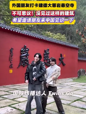 江南悬空寺遇上Twins Go,国际传播达人Twins Go打卡建德大慈岩江南悬空寺,直呼不可思议!太美了,希望邀请朋友来中国逛逛