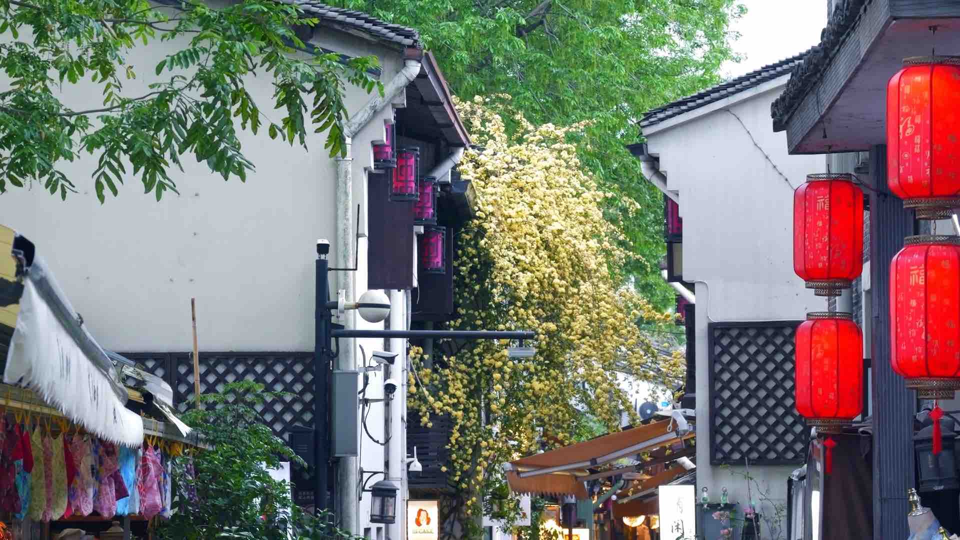 杭州小河直街花事盛,木香、紫藤、素兴花,满街皆是温柔