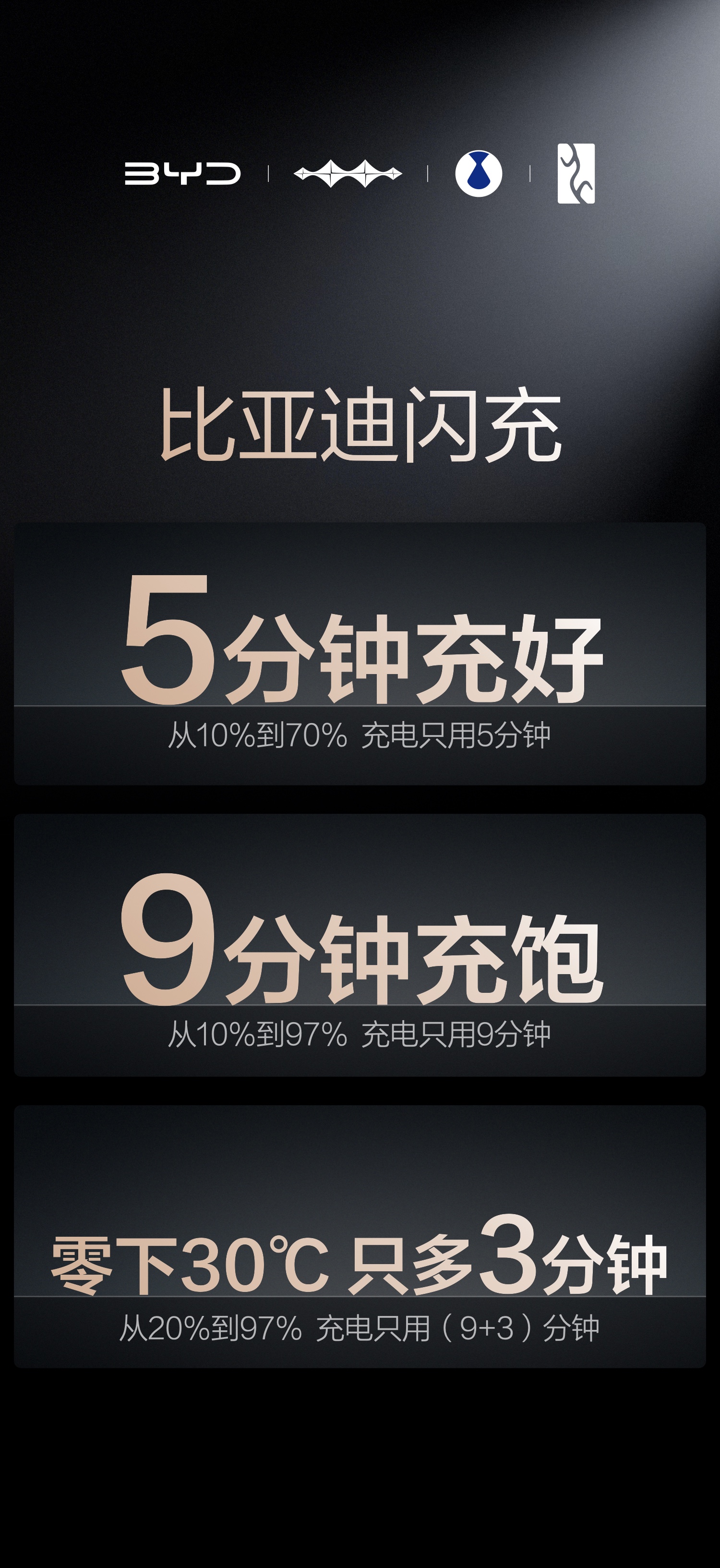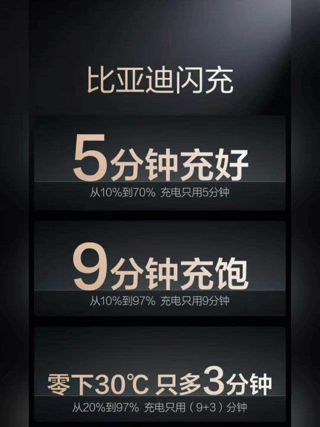 比亚迪硬核闪充技术树立行业新标杆,让每一次出发都恰到好处; 五分好,恰如其分的驾乘质感; 九分饱,不必满电的从容底气; 三分寒,不畏严寒的极效续航。