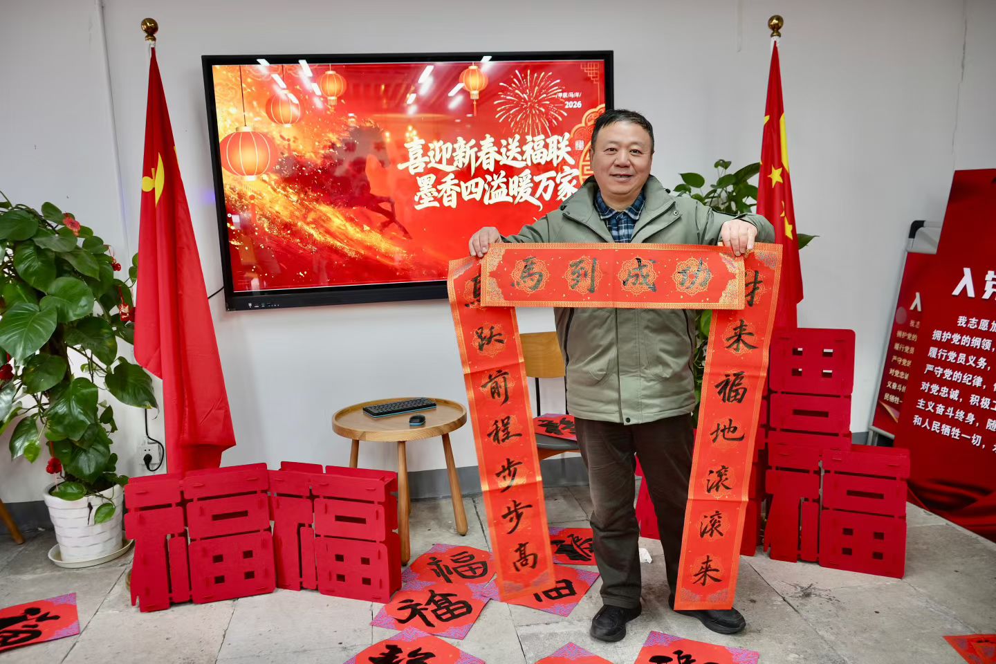 红心映初心 墨香暖万家——宁波工人运动纪念馆开展新春送福活动 红心映初心,墨香暖万家!为传承红色工运精神、弘扬中华优秀传统文化,向职工群众传递新春佳节喜庆祥和的氛围,2月8日上午,宁波市工人文化宫在宁波工人运动纪念馆举办“迎新春·送万福”写福送联文化公益活动。值此新春将至、福启新元之际,活动为即将到来的佳节增添了一抹亮丽的喜庆红。 活动现场暖意融融,热闹非凡。书法家们凝神挥毫,笔走龙蛇。顷刻间,一个个遒劲饱满的“福”字跃然纸上,一副副满载期许的春联新鲜出炉,浓浓墨香与喜庆年味弥漫全场。 孩子们在家长的陪伴下,一笔一划认真临摹。稚嫩笔触下的“福”字憨态可掬,欢声笑语中定格下温馨的亲子时光。一道格外动人的风景,是几位国际友人的热情参与。他们兴致勃勃地拿起毛笔,虽笔法生疏却勾勒得十分认真,深深沉浸于中华书画艺术的独特魅力之中。当他们举起自己书写的“福”字,用不太流利的中文说出“新年快乐”时,真挚的祝福让现场的暖意再度升级。红纸寄情,笔墨传福。火红的对联、喜庆的“福”字,既承载着对祖国繁荣昌盛、人民幸福安康的美好祈愿,也以文化为桥,让红色工运精神与中华优秀传统文化在此刻深度交融。职工群众手捧福联,笑意盈盈。一张张灿烂的笑脸,映红了纪念馆,也让这个新春显得格外温暖祥和,处处洋溢着生机勃勃、奋进向上的新春气象。(文:俞晓军 图:戈永平)