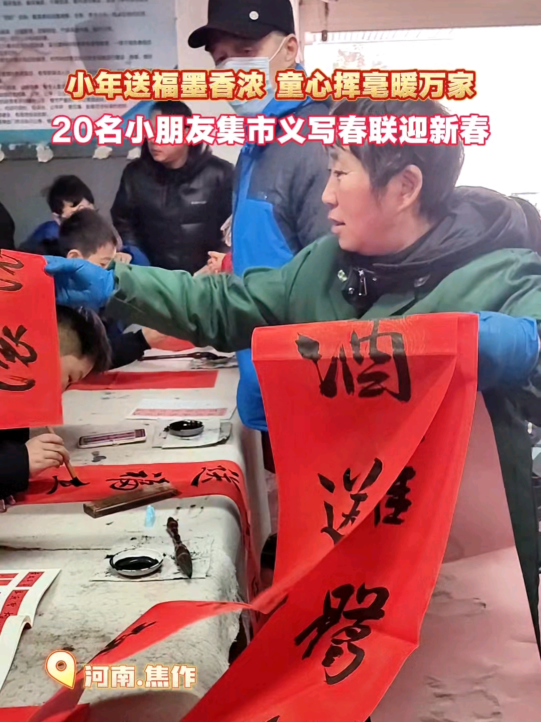 小年送福墨香浓 童心挥毫暖万家——20名小朋友集市义写春联迎新春#春联