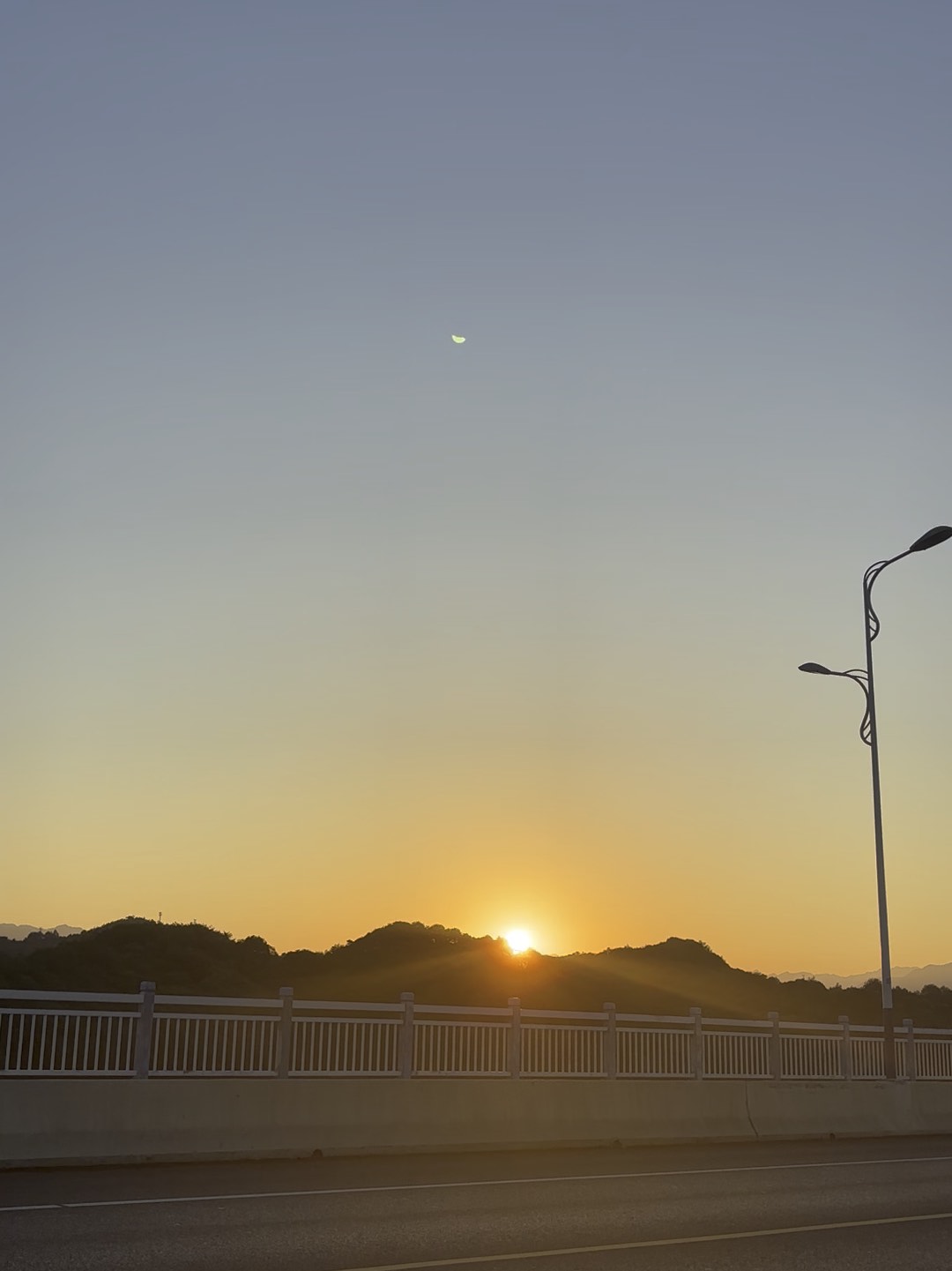 今天早上晨跑🏃无意间拍到了好奇怪的现象,是日月同辉吗