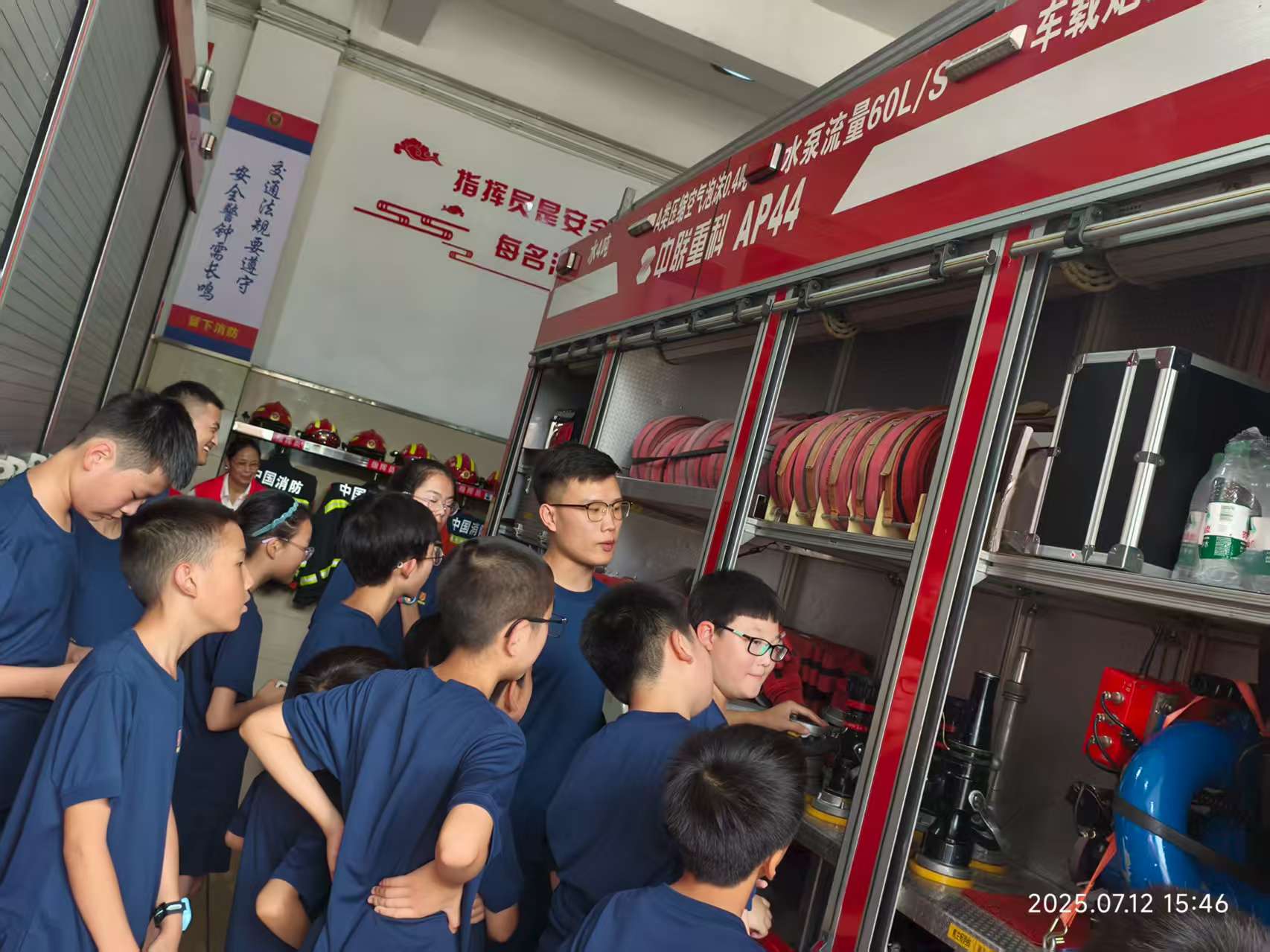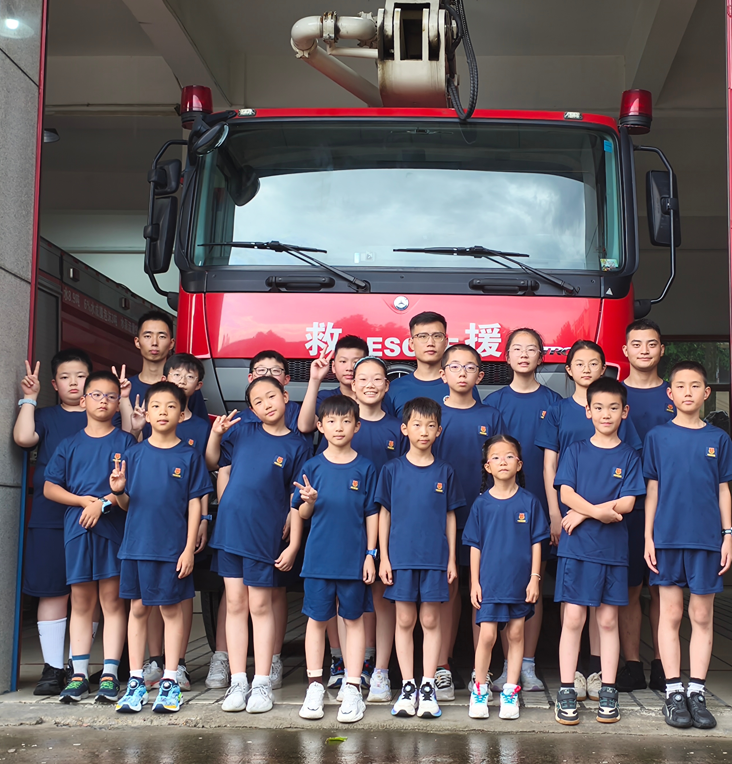 未保课堂里的“火焰蓝”体验 参加未成年人综合保护暑期夏令营的消防一日体验,是我近期最难忘的经历。 活动伊始,消防员叔叔们便带我们认识了他们的“战斗服”——从日常出勤的普通制服,到能抵御烈焰的防火服、隔绝狂风的防风服、耐受高温的防热服,甚至还有专门应对蜂群侵扰的防蜂服,每一款都藏着对不同险情的精准应对,看着这些装备,仿佛在无声诉说着一次次救援的故事。集合点名后,操场中央高耸的训练梯让人心头一紧,望着高高的梯子我有点发怵,但还是在指导下慢慢向上爬。每一步都沉甸甸的,才懂消防员日常训练多不容易。握起水枪时,才知它有多沉。在消防员耐心教导下,我学着控制水流,当水柱喷出的瞬间,既觉震撼又体会到操作的难度。午餐后看的《焚城》,让我深深被消防员逆行火海的勇气打动。随后的安全课上,燃烧三要素、火灾分类、灭火器用法等知识,让我收获满满。最后参观消防车装备,每件工具都像消防员的“战友”,关键时刻能派上大用场。 活动结束时,我们和消防员叔叔们并肩站在消防车前合影,镜头里每个人的脸上都带着收获的笑容。这一天,我不仅摸到了真实的消防装备、学会了实用的安全技能,更读懂了“责任”二字的重量。那些汗湿的训练服、磨亮的工具、逆行的背影,都在告诉我:消防员是和平年代最可爱的人,他们用汗水浇灌安全,用担当守护万家灯火,是当之无愧的英雄。
