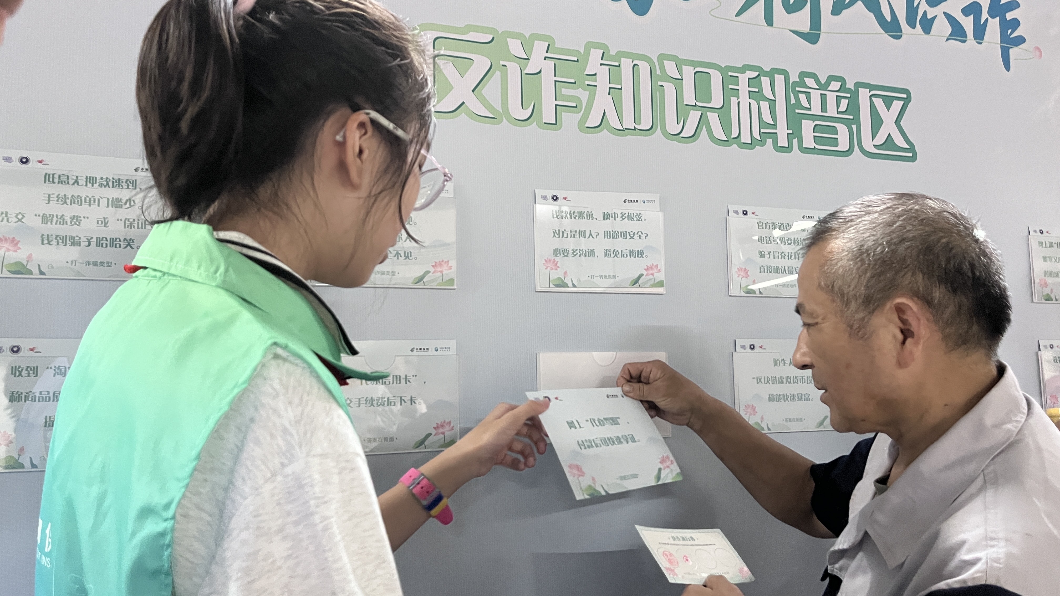 当公益小天使遇上反诈游园会 今天我作为公益小天使,在西湖文化广场地铁站反诈游园会做志愿者!穿着绿马甲,守在知识展板区,给路过的叔叔阿姨讲解诈骗案例。看着越来越多人说“这下知道咋防骗了”,我的心里特别自豪,原来把反诈知识融进游戏里,大家接受得这么快。通过这次的反诈科普活动,也让“不听不信不转账、不给不要不上当”的防范信念,更深扎进大家心里啦 。———杭州公益小天使王龄悦