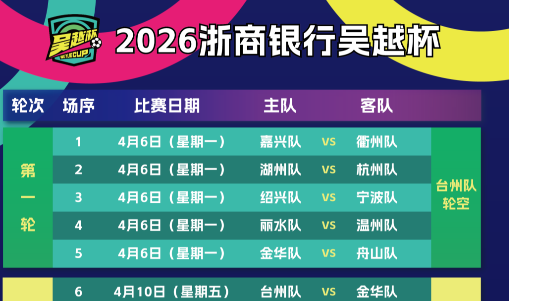 吴越杯全赛程出炉,4月6日绍兴VS宁波