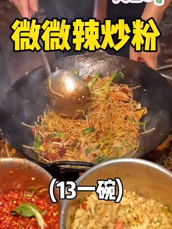 南昌街边13一碗的微微辣炒粉,锅气十足,非常好吃,快来尝尝吧!