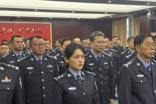 在仪式上,魏佳琪和全体民警代表一起重温入警誓词。魏佳琪表示,将把警号“012550”作为终生信仰,以父亲为榜样,牢记初心使命、恪尽职守、担当作为,用青春和热血守护万家灯火。