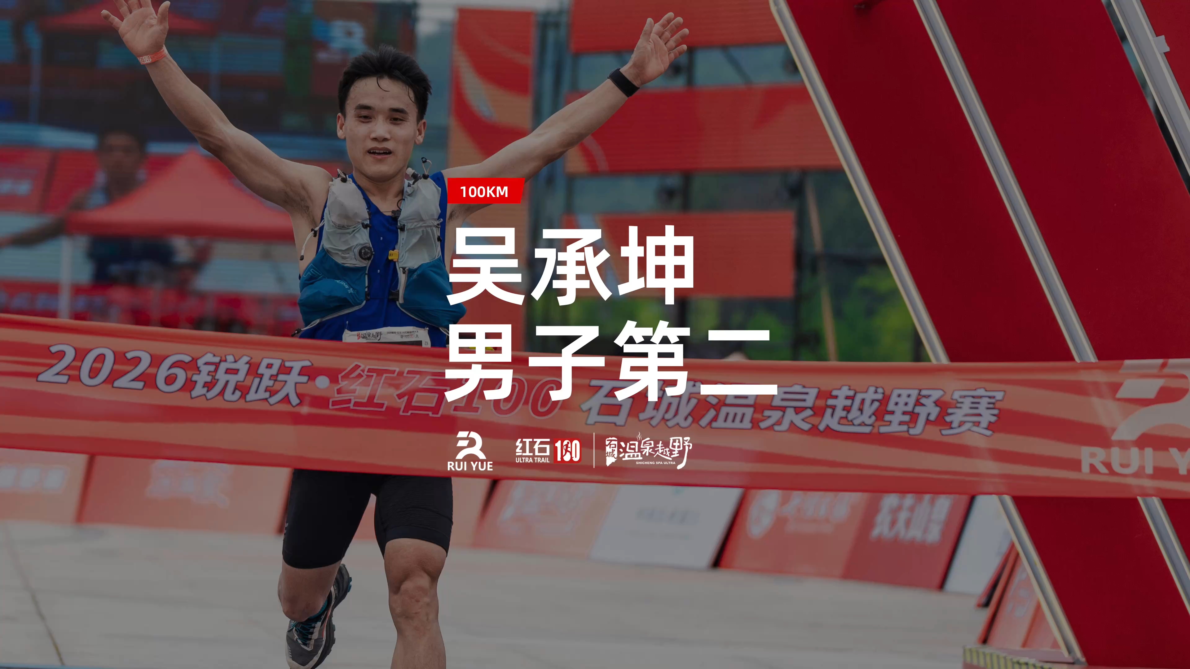 2026锐跃·红石100石城温泉越野赛,吴承坤男子第二冲线! #跑石城·泡温泉# #石城温泉越野赛# #红石100#