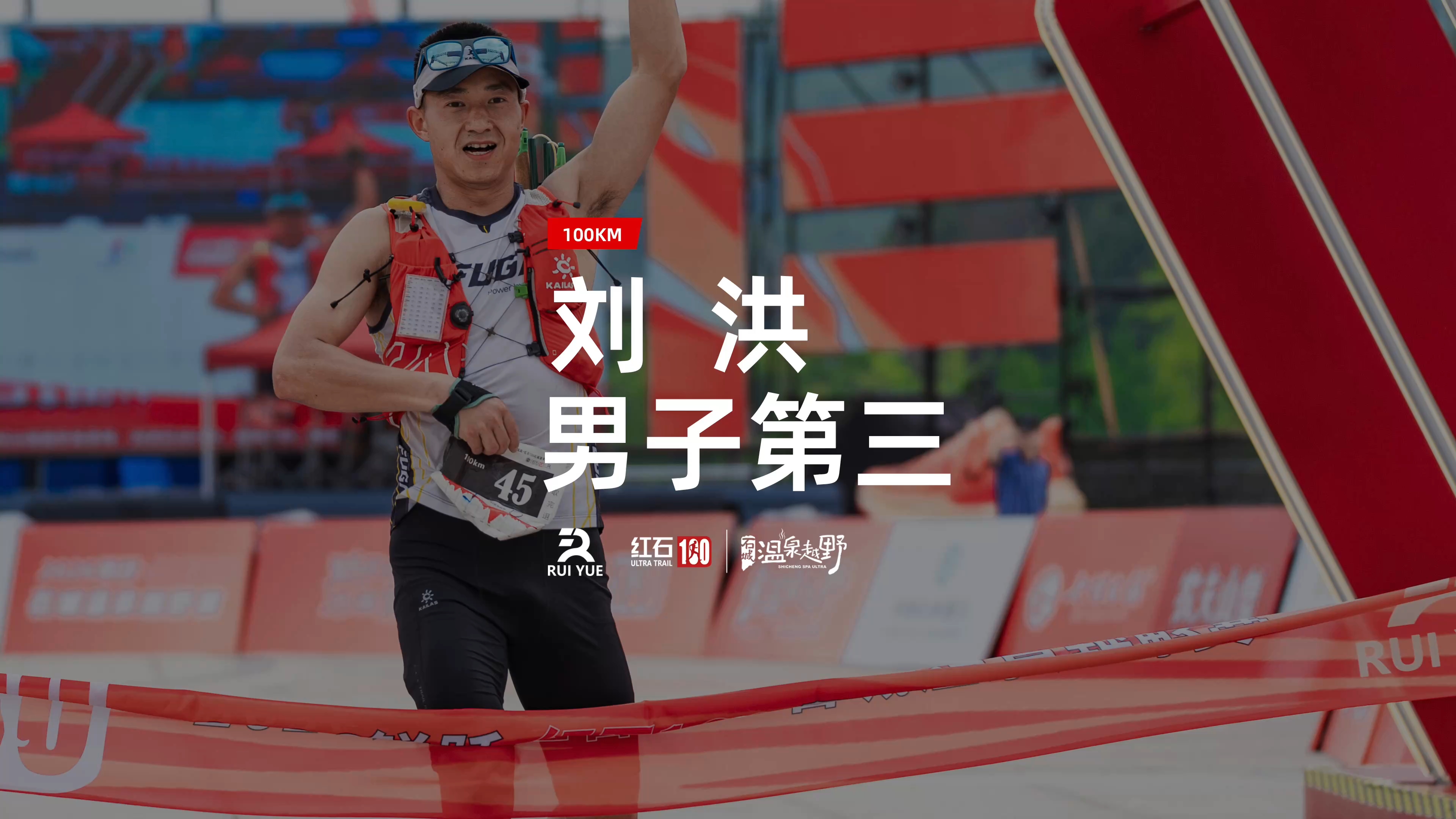2026锐跃·红石100石城温泉越野赛,刘洪男子第三冲线! #跑石城·泡温泉# #石城温泉越野赛# #红石100#