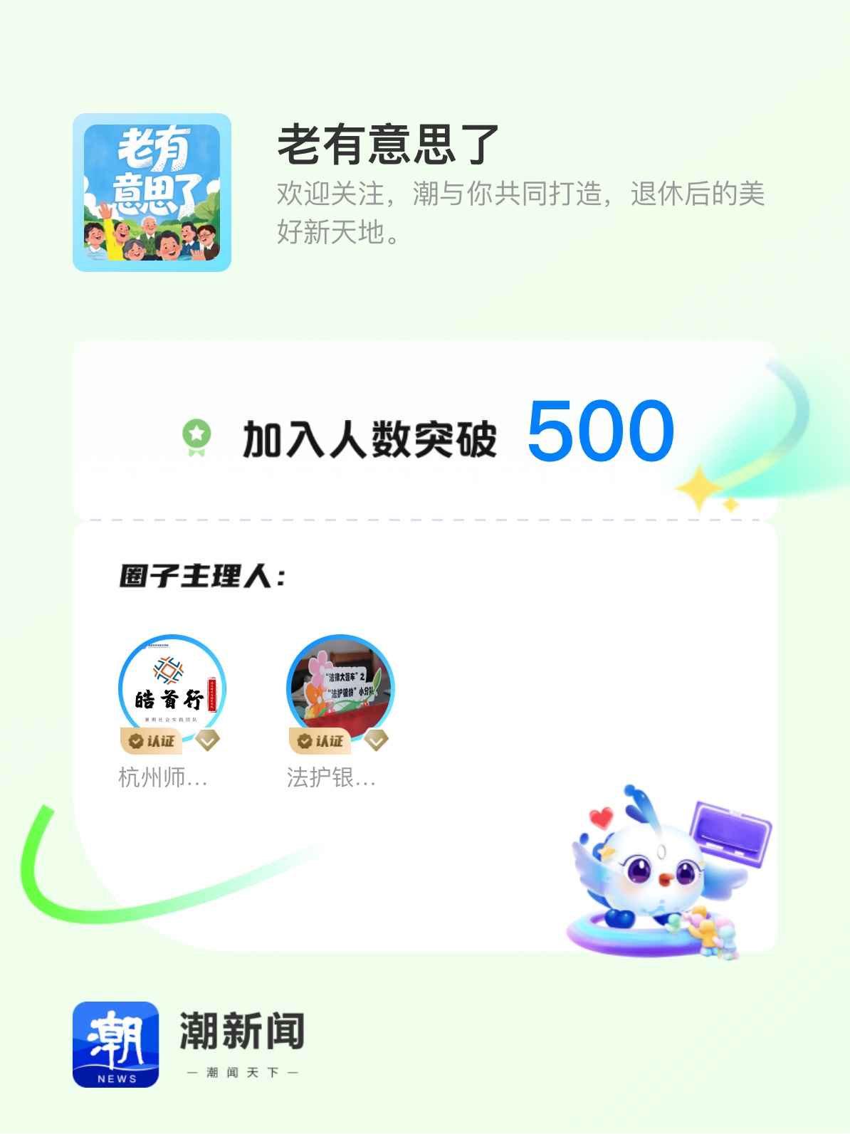 我主理的“老有意思了”解锁新成就「加入人数突破500」,感谢大家的支持,欢迎来圈子互动交流!