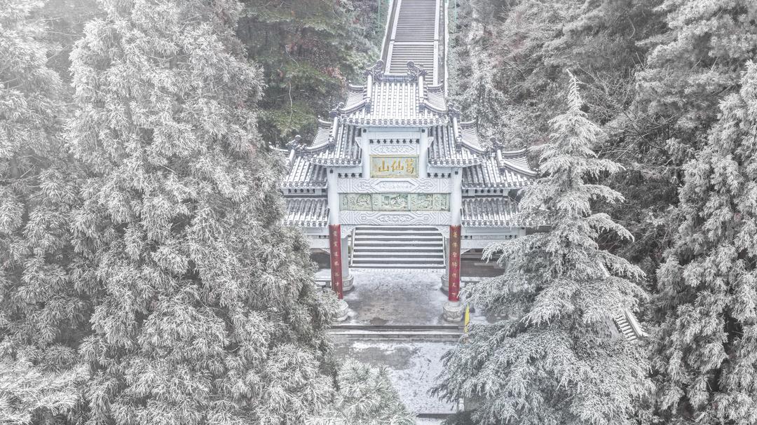 2026年1月21日,江西省铅山县葛仙山降下大雪。雾气弥漫之下,山雪令葛仙道观显得尤为清冷神圣。
