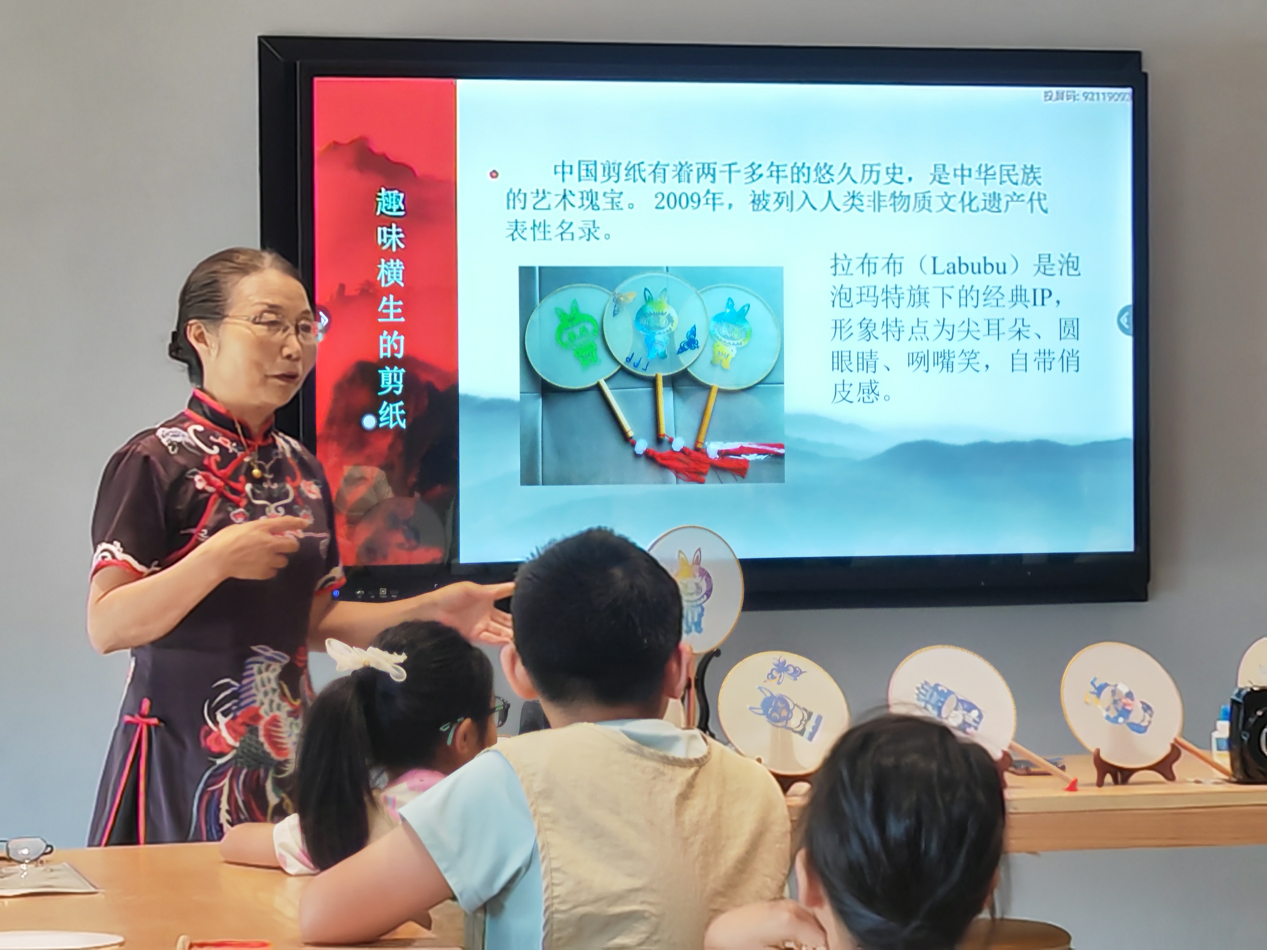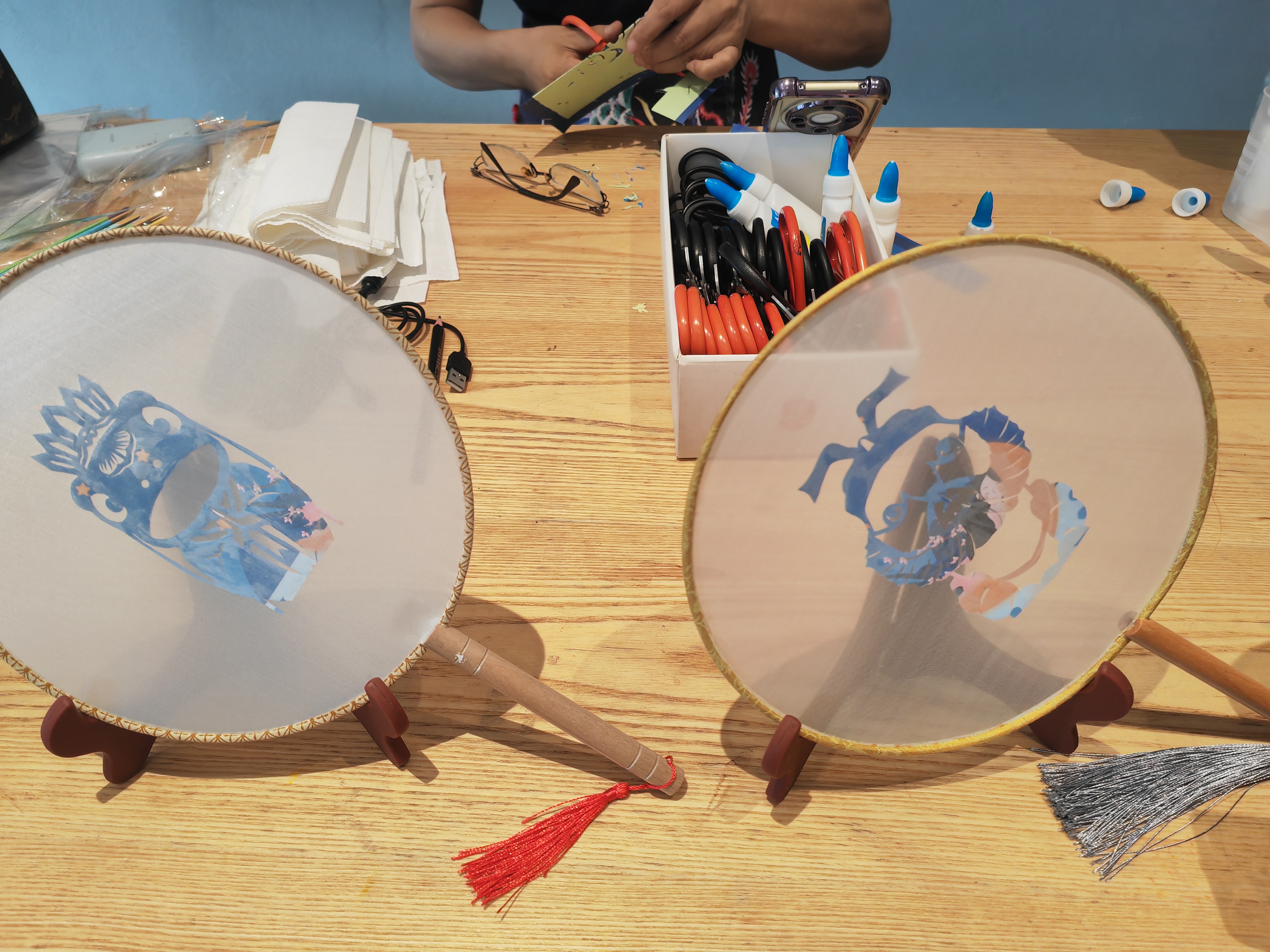 浙江非遗馆 8月参加了丽水非遗场—缙云剪纸研学 老师好潮啊,安排孩子们用对折法,镂空法,暗刀法剪了现在的顶流labubu,然后再贴饰于古雅的宫扇上,古典和现代的完美结合,精致又实用。 还能剪刚上映的电影浪浪山小妖怪里的动画人物,老师紧跟潮流,真能抓住孩子们的心呢~