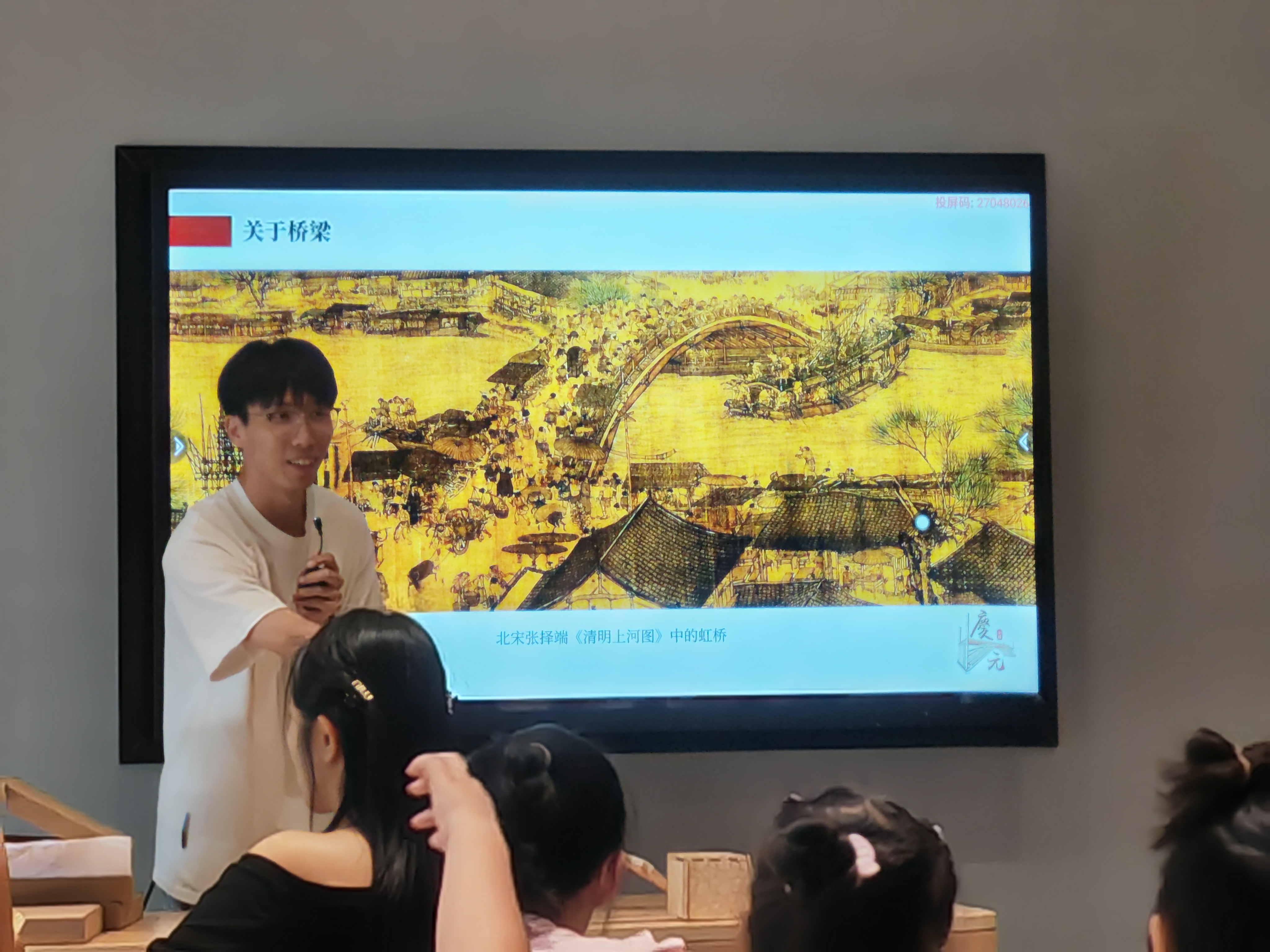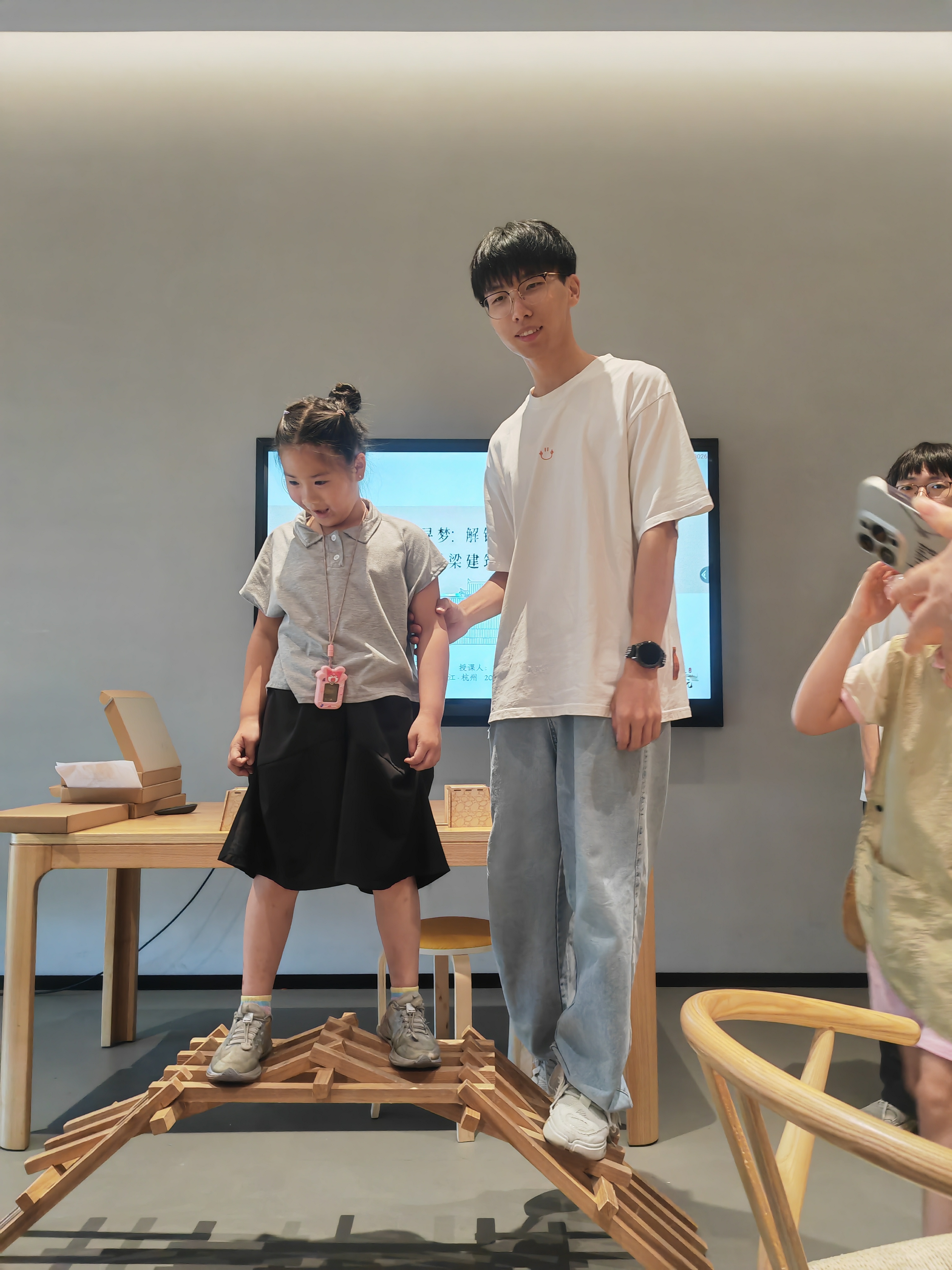 浙江非遗馆 参加了8月丽水场非遗—木拱桥营造技艺 老师现场搭的木拱桥站上去3—4个娃都没有问题哦。 自己动手环节可不怎么轻松啊,容易倒,需要一定的耐心和诀窍。 最终在老师的指导下完成了两座拱桥的制作,回家还有家庭作业,还要加上桥墩,加上自己的创意来搭桥,真是好玩有趣动手又动脑的一节课。