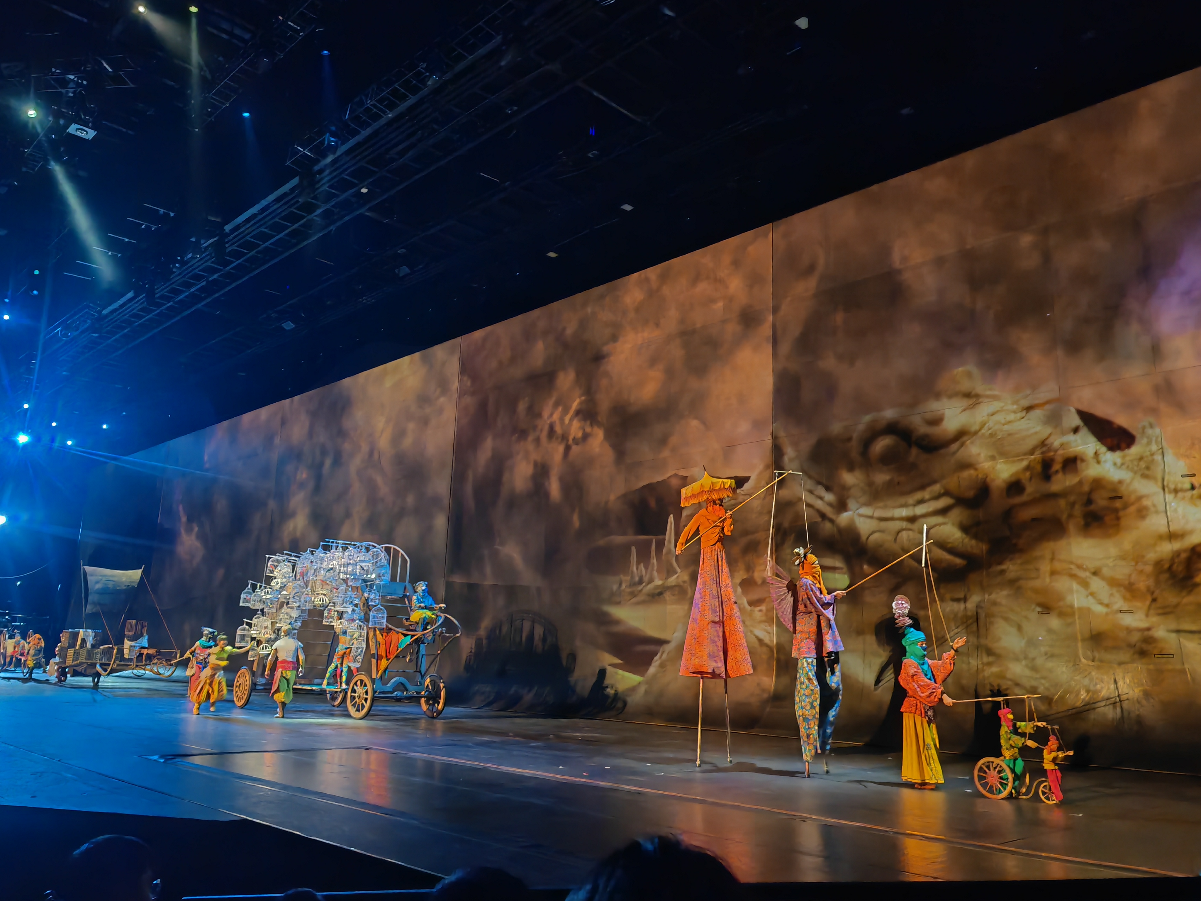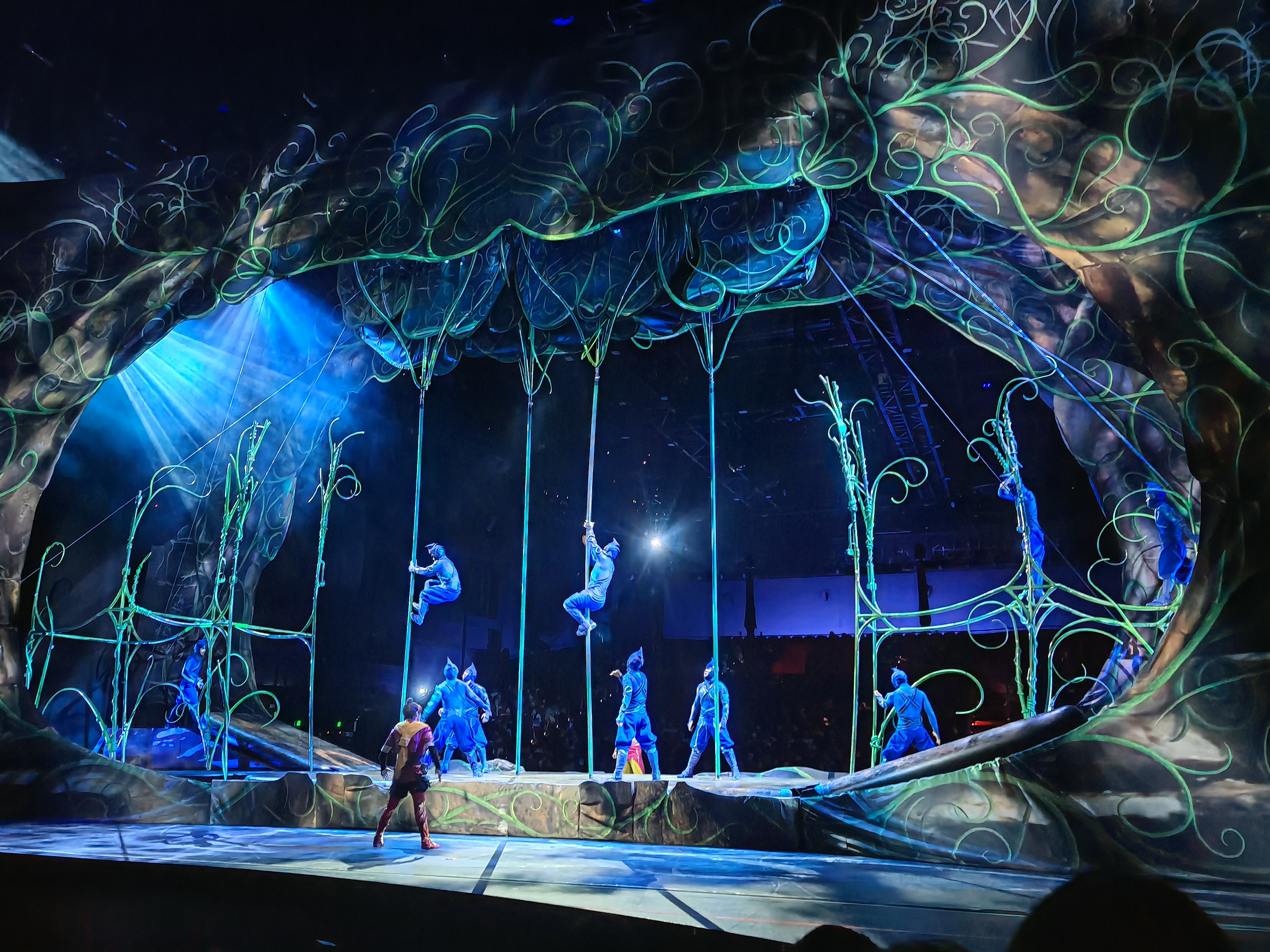 二刷新天地太阳马戏“x秀” 哈哈上一次高架堵车,迟到不让进,说要等座位转回来才能进去。 好不容易进去了,结果一进去还没搞清楚里面的情况,一个外国人就从头顶上飞过,然后又一个,懵逼了,然后10来分钟就谢幕了。 哈哈哈哈所以这次文旅换了票又来看看究竟是怎么个事~ 整体的座椅是360旋转的,移步换景,有好几个舞台,我们选的“阿里亚”最后也会旋转到和“彼得拉”观众面对面,蛮新奇的。 舞台设计和音效灯光蛮出彩的,马戏感觉一般吧。小朋友对上一次的演出一点印象都没有了,这次看还觉得蛮新奇的。