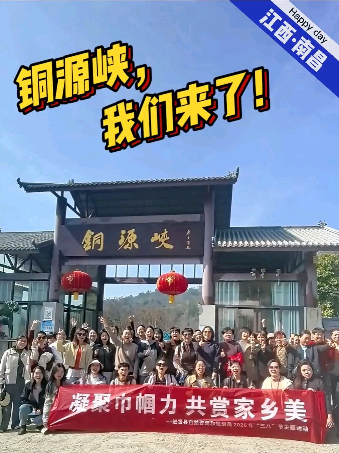 近日,江西省南昌市进贤县自然资源和规划系统的女同事们来到铜源峡景区,参加“三八”国际妇女节“凝聚巾帼力 共赏家乡美”主题活动。 铜源峡景区坐落于江西省南昌市新建区梅岭山脉,是国家4A级旅游景区、国家风景名胜区与国家森林公园。 三月春风拂暖,万物次第苏醒,铜源峡的春日已悄然铺展成诗。女同事们褪去忙碌与疲惫,赴一场山水之约,在金黄油菜花海与粉艳桃花仙境中,遇见最美的自己。