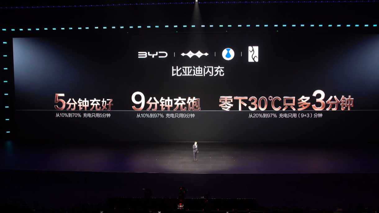 不止充电快,而且再也不怕快充衰减,第二代刀片电池实现闪充与寿命双赢!重新定义电池安全标杆! 攻克充电慢、低温充电难行业痛点,10%至70%仅需5分钟、至97%9分钟,-30℃仅多3分钟。 其打造锂离子高速通道,搭配全温域热管理系统,平衡闪充与电池寿命,还加码质保政策,电芯终身保修,各周期容量保持率均提升2.5%。 该电池通过超新国标测试,500次闪充循环后多项极端测试均无热失控,热扩散、底部撞击测试标准远超国标,实现闪充、寿命、安全全面跃升,推动新能源汽车迈入闪充时代。