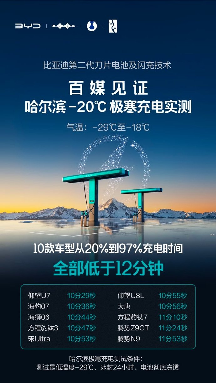 前几天就去现场直击了比亚迪第二代刀片电池闪充技术实测,真的被这充电速度惊艳到了!硬核闪充技术树立行业新标杆,常温、低温双场景表现都超亮眼💯 ✅常温闪充超给力,5分钟充至70%,9分钟直接冲到97%; ✅-30℃极寒环境也丝毫不拉胯,仅多3分钟就能快速补能,冬季自驾再也不用愁补能慢~ 搭配超千公里续航,长途出行的续航焦虑直接烟消云散,再加上未来两万座闪充站的规划落地,新能源自驾的便捷度直接拉满,真的狠狠期待住了!