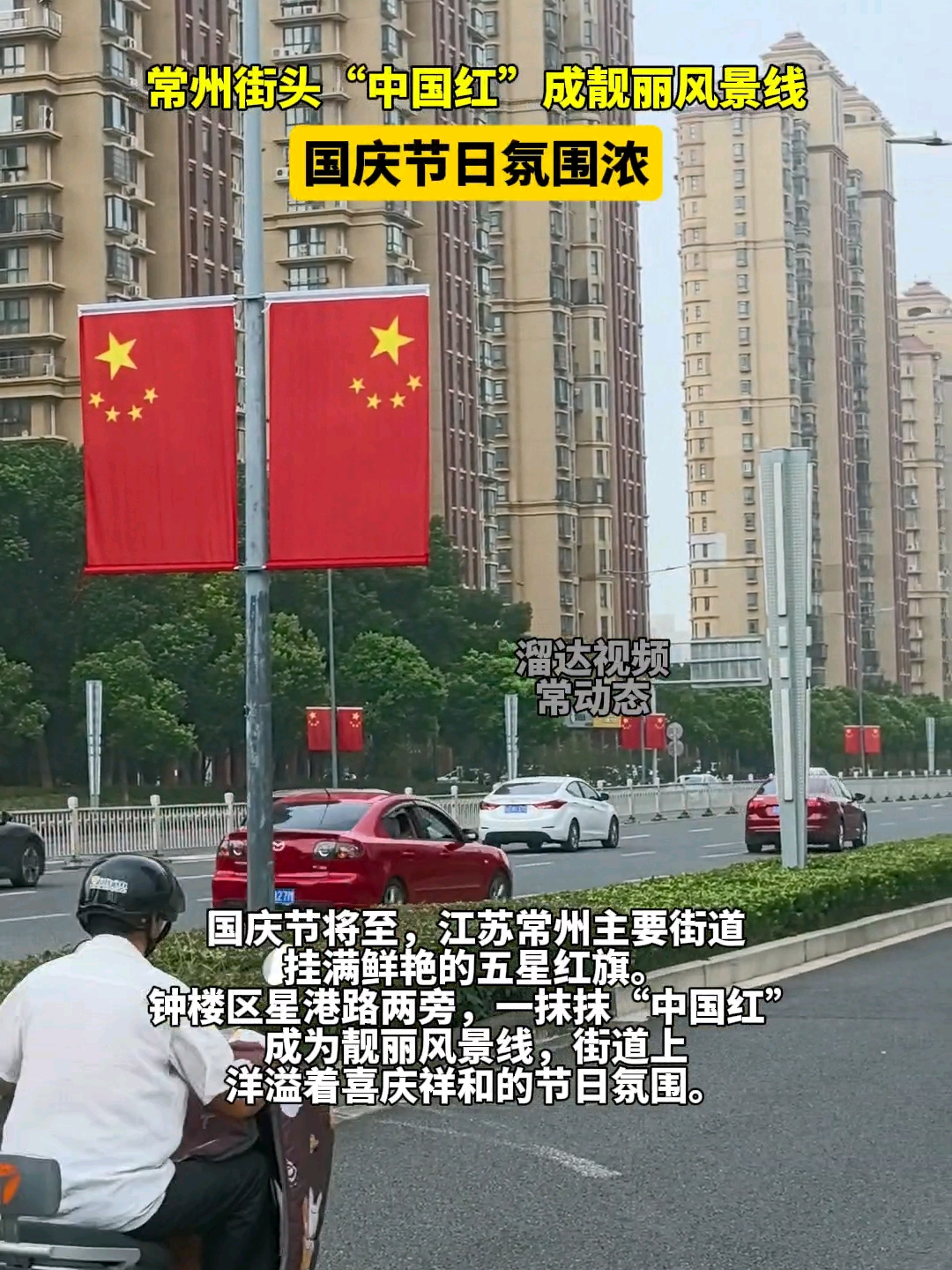常州街头“中国红”成靓丽风景线 国庆节日氛围浓
