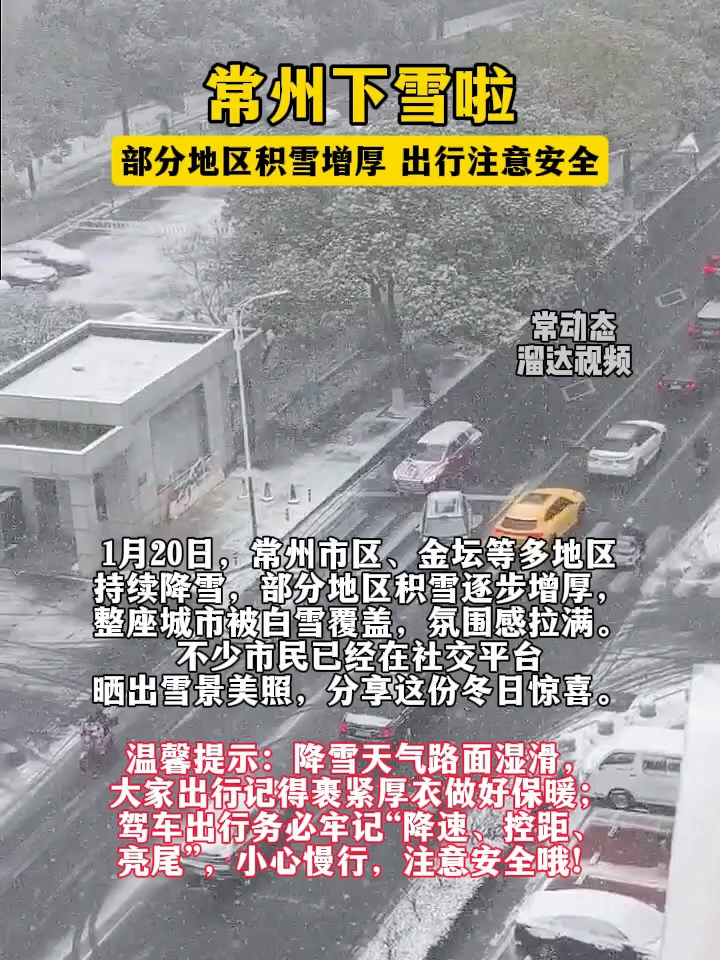 常州下雪啦!部分地区积雪增厚,出行注意安全