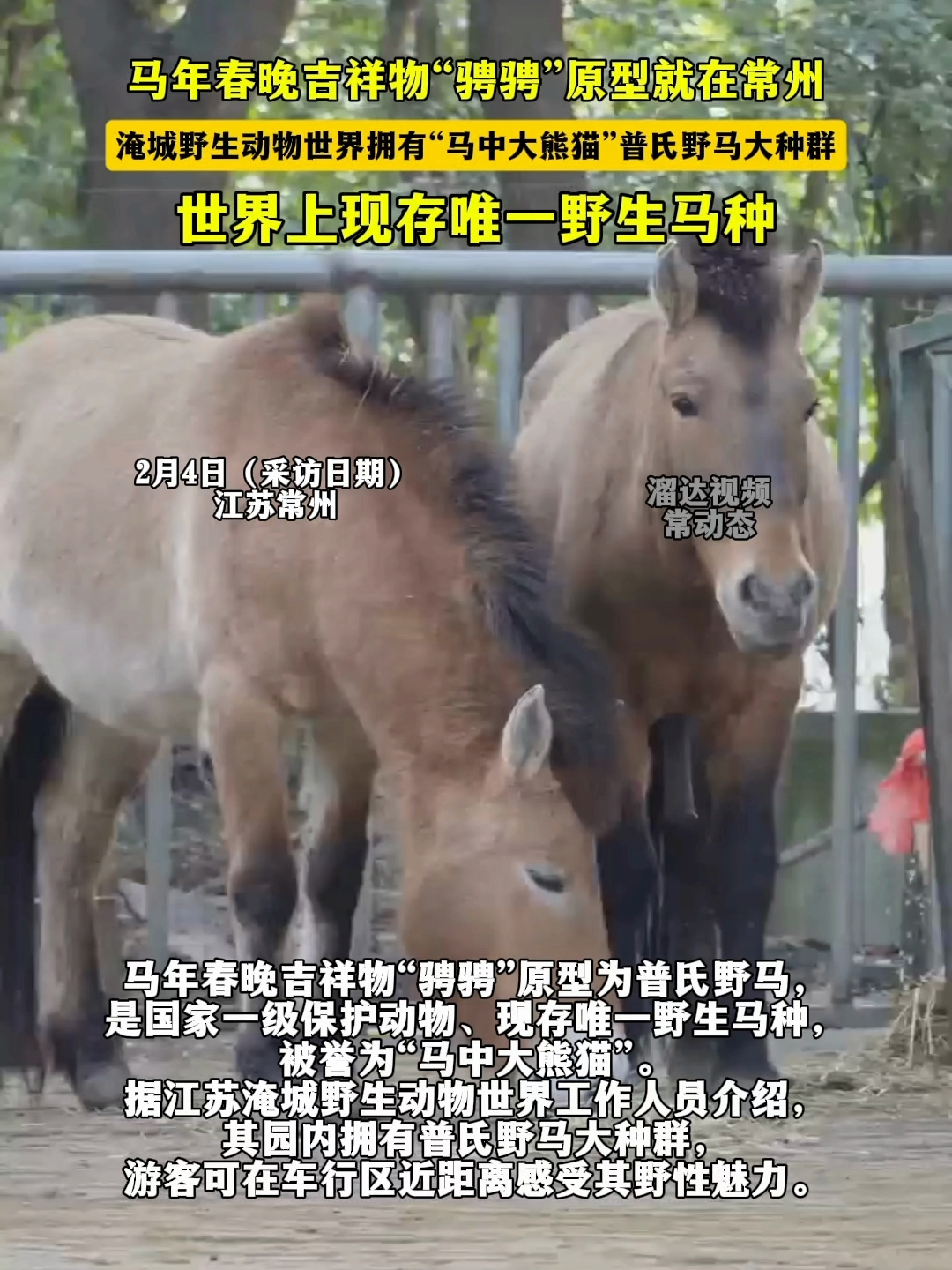 马年春晚吉祥物“骋骋”原型就在常州,淹城野生动物世界拥有“马中大熊猫”普氏野马大种群