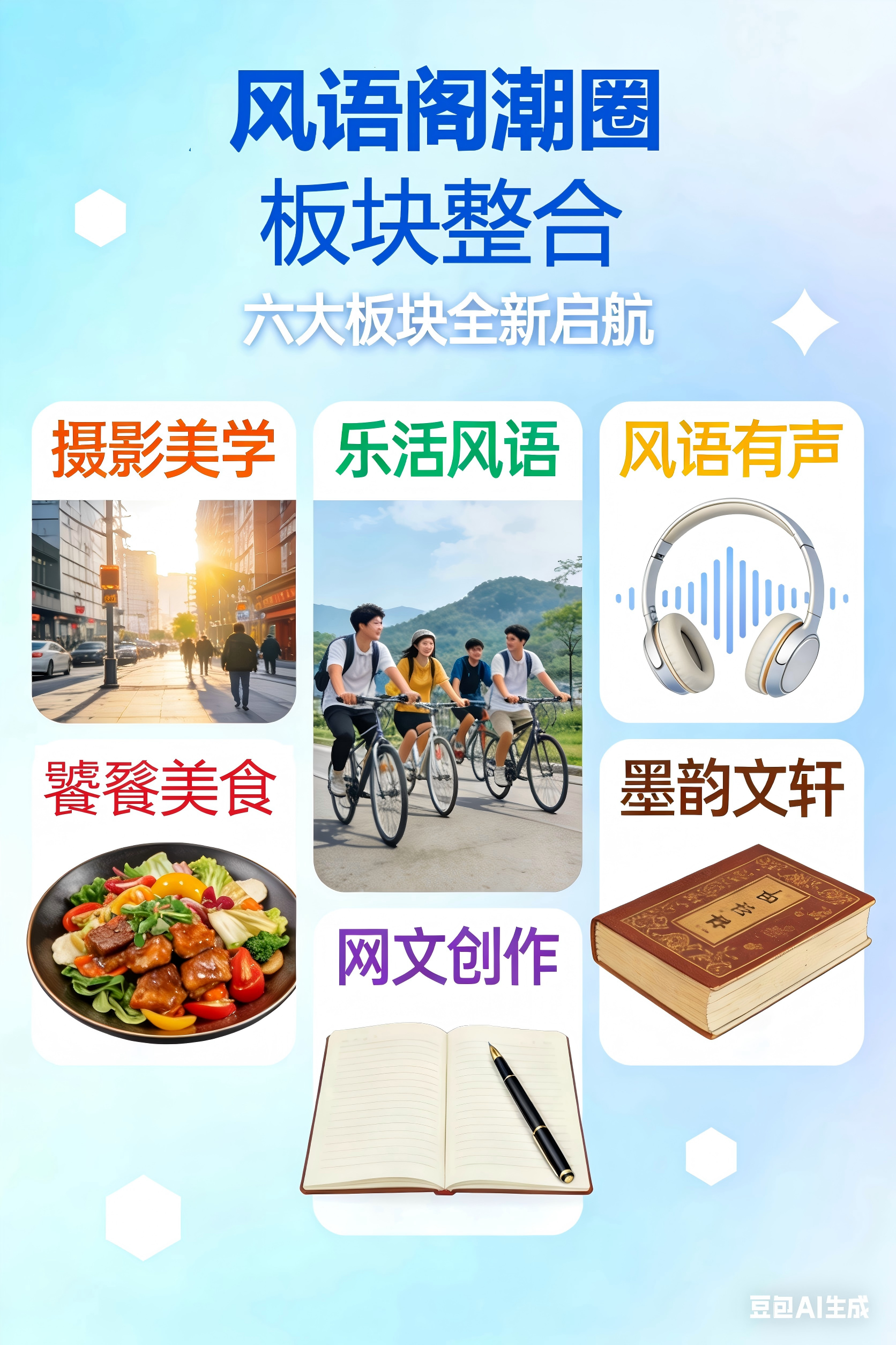 风语阁潮圈板块整合公告 亲爱的风语阁潮圈家人朋友们: 为了给大家带来更聚焦、更优质的交流体验,风语阁潮圈经过主理人团队内部深度商讨,决定对原有板块进行全面整合升级! 原 17 个细分板块,现正式精简优化为6 大核心板块,全新板块阵容及主理人信息公布如下: 摄影美学:定格光影瞬间,分享摄影技巧、作品赏析与审美提升。 主理人: