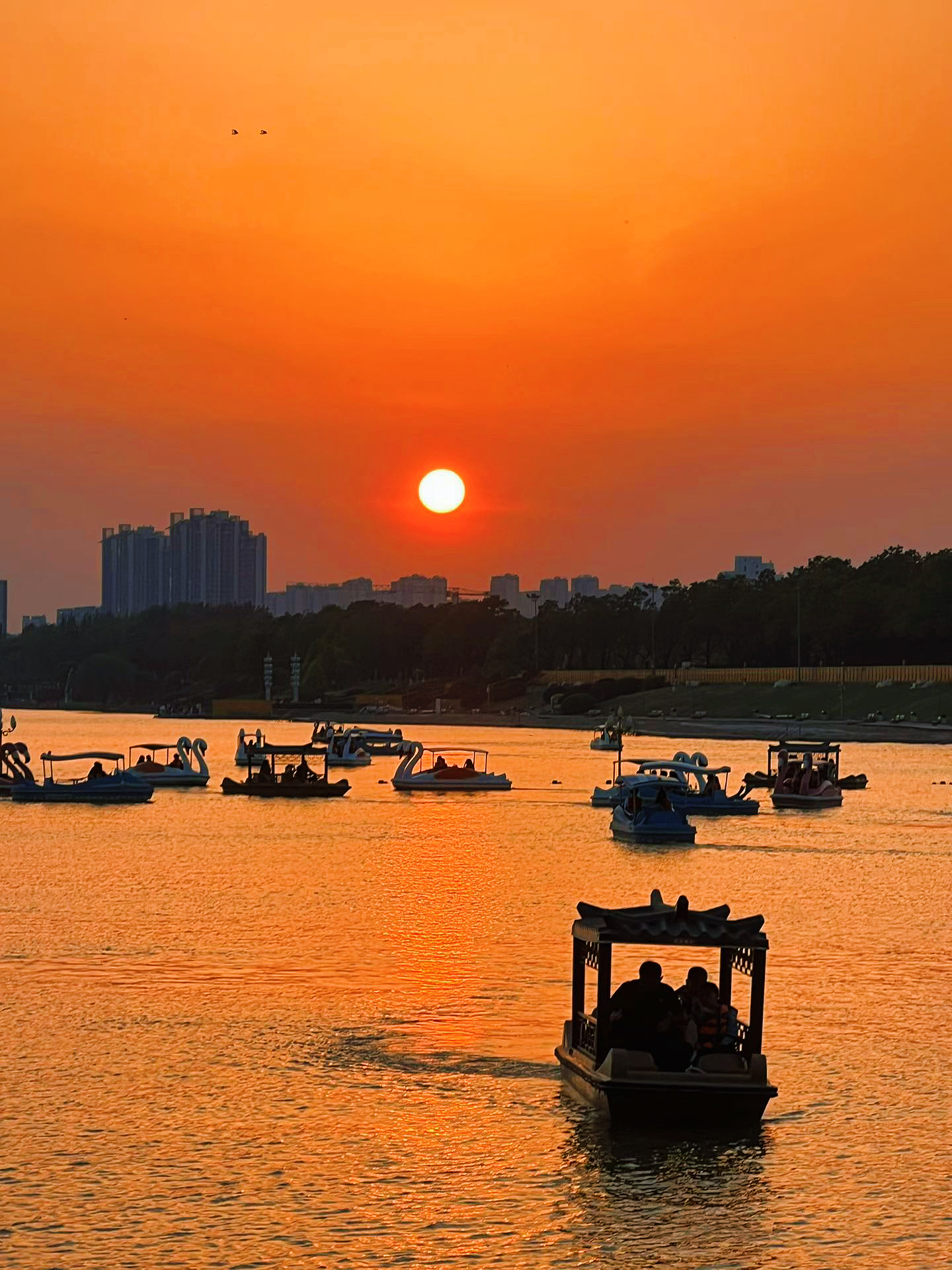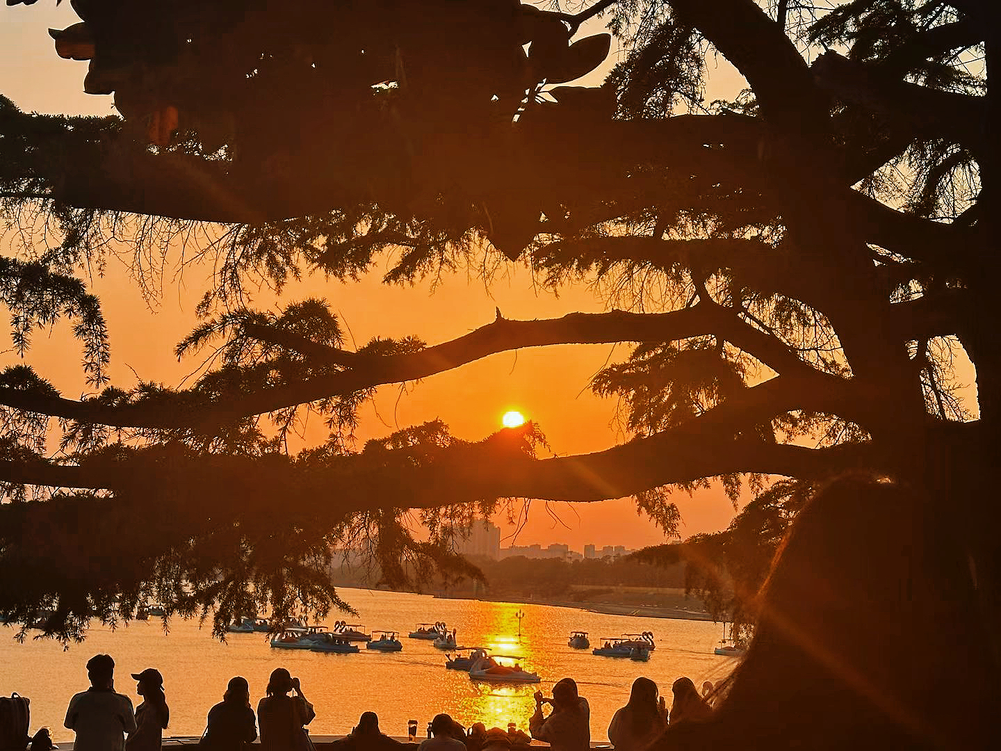 和朋友一起看了一场城市里的日落。湖面摇碎星光,点点滴滴散落进了心里