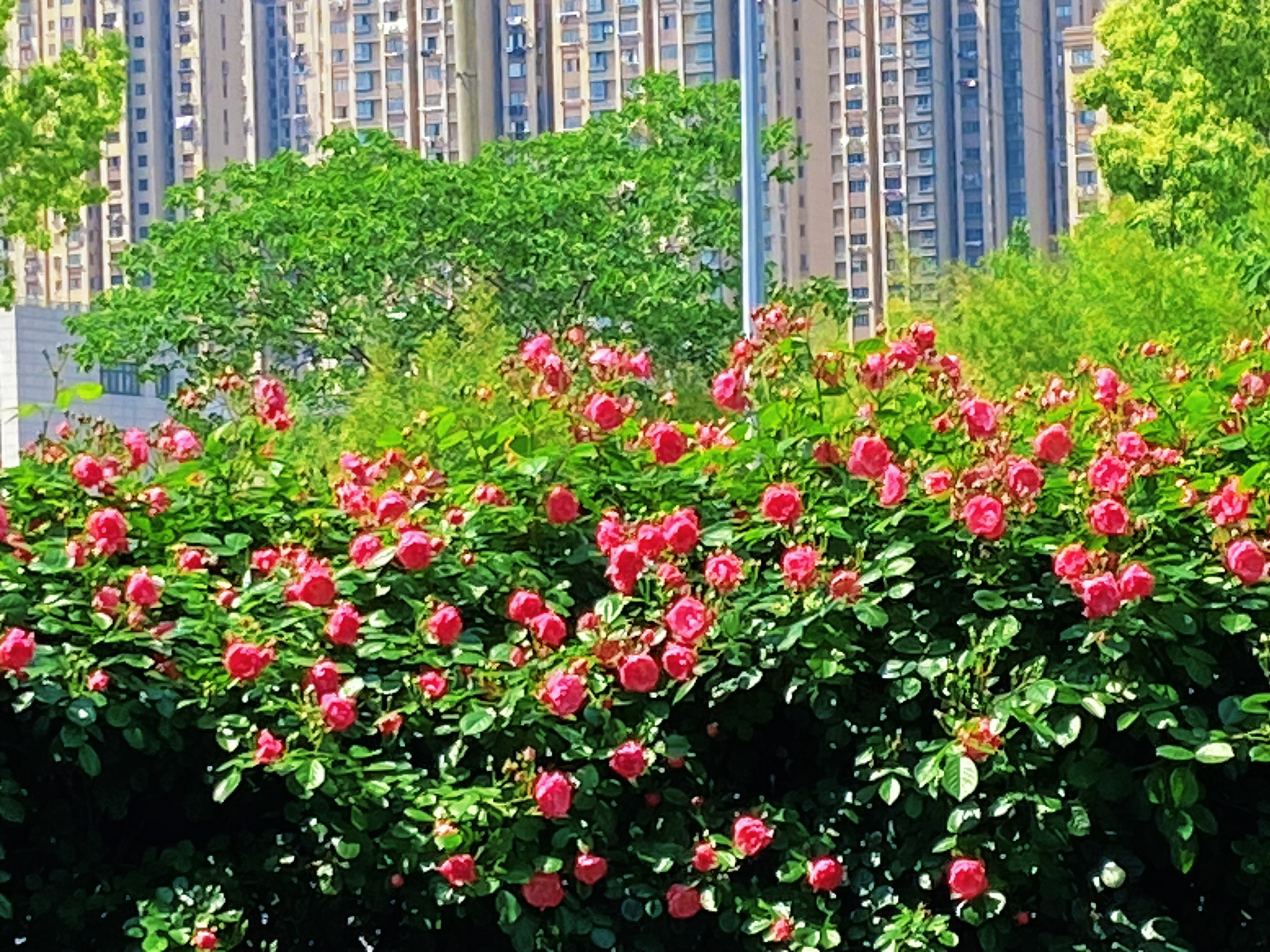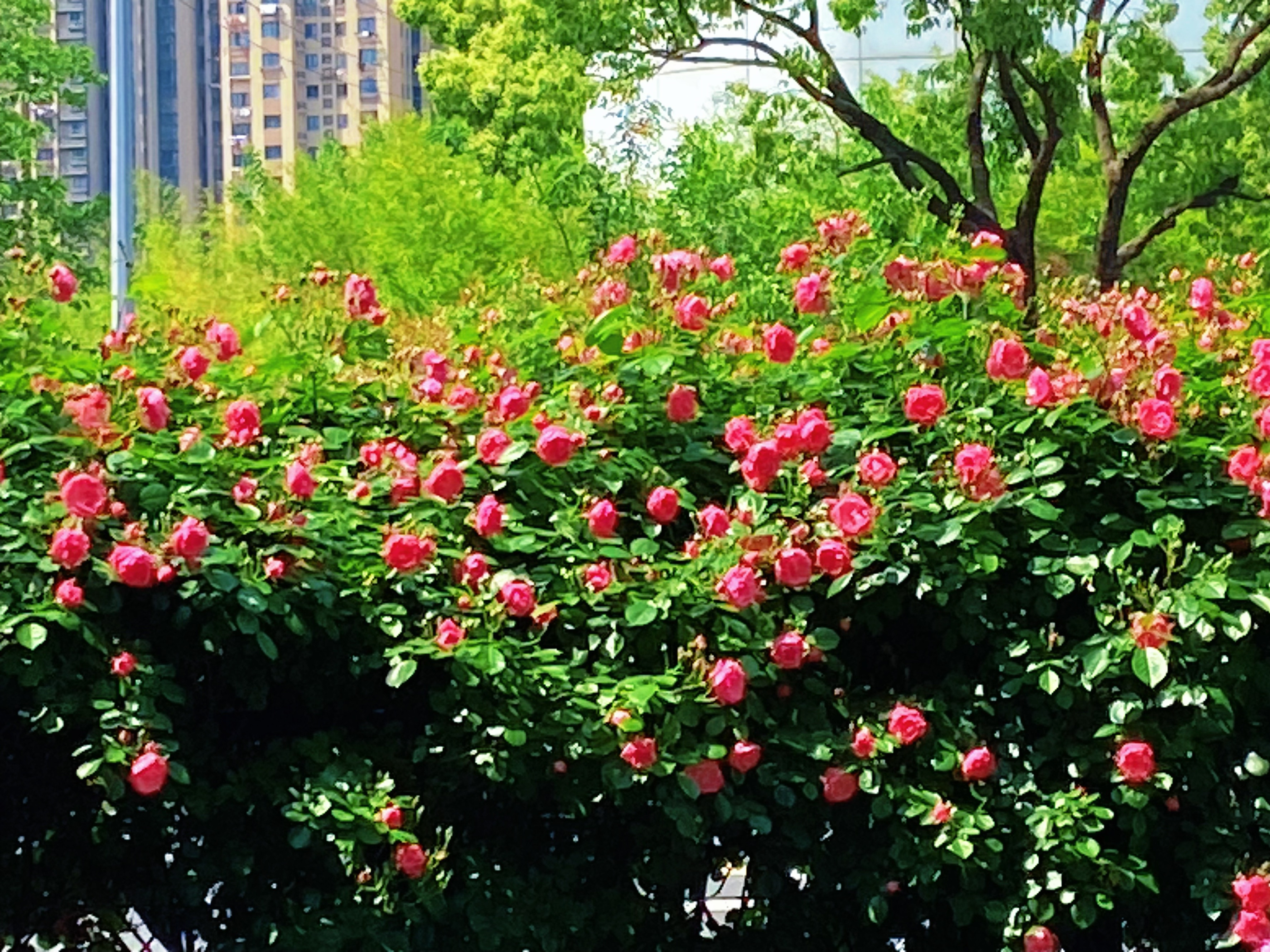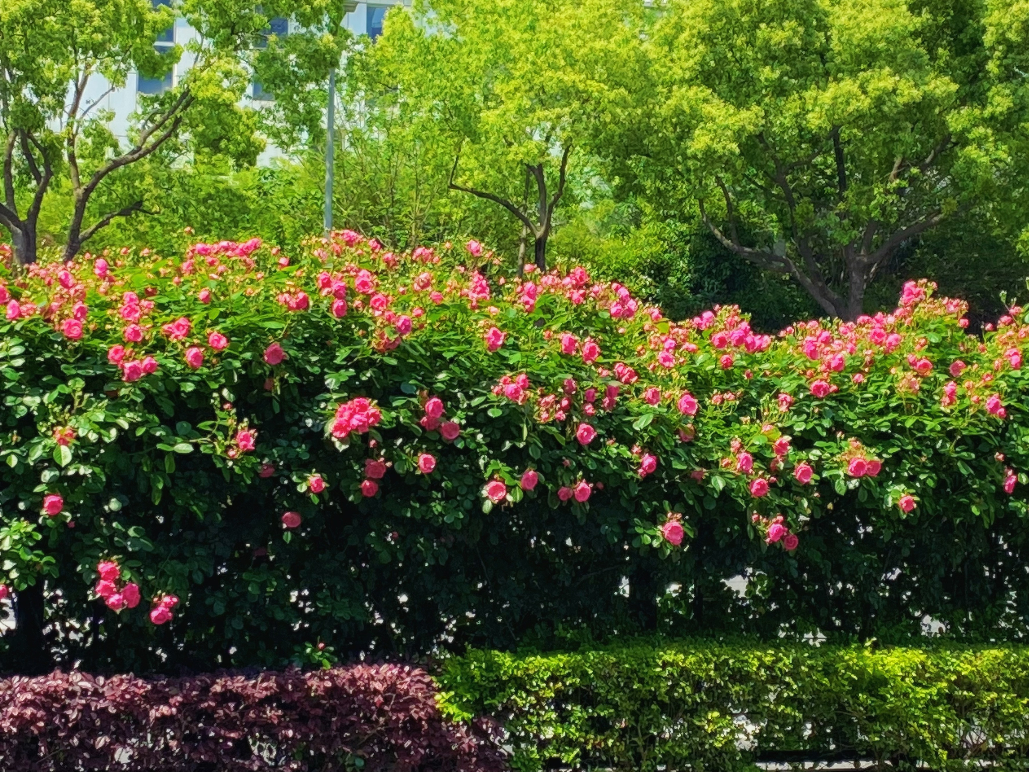 刚下钢筋高架匝道口,就被绵延的蔷薇迎进了上海浓浓的春日烟火里😊