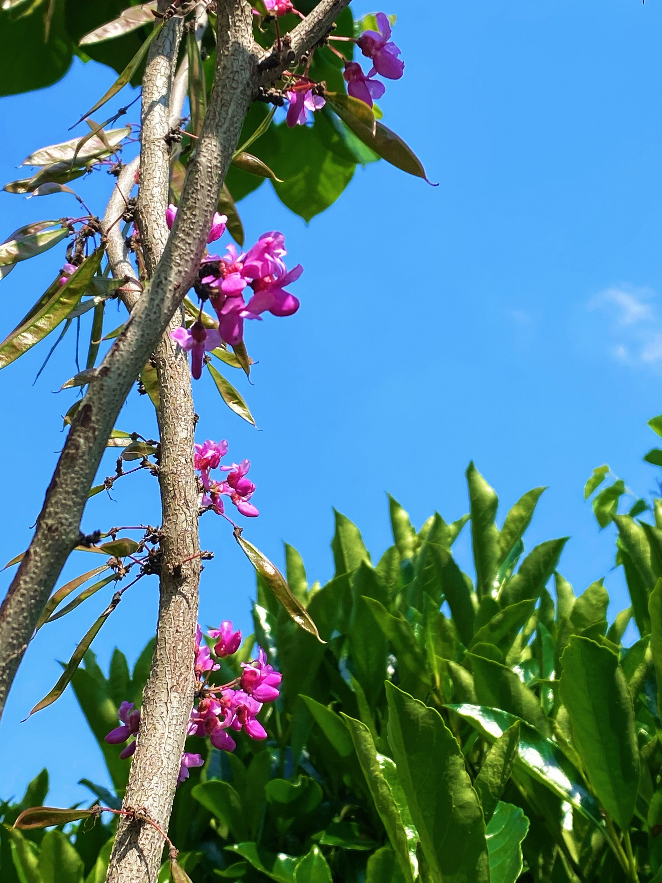 抬头撞见满枝的紫和透亮的蓝,原来,天朗气清的春天藏在放学路过的风里😊