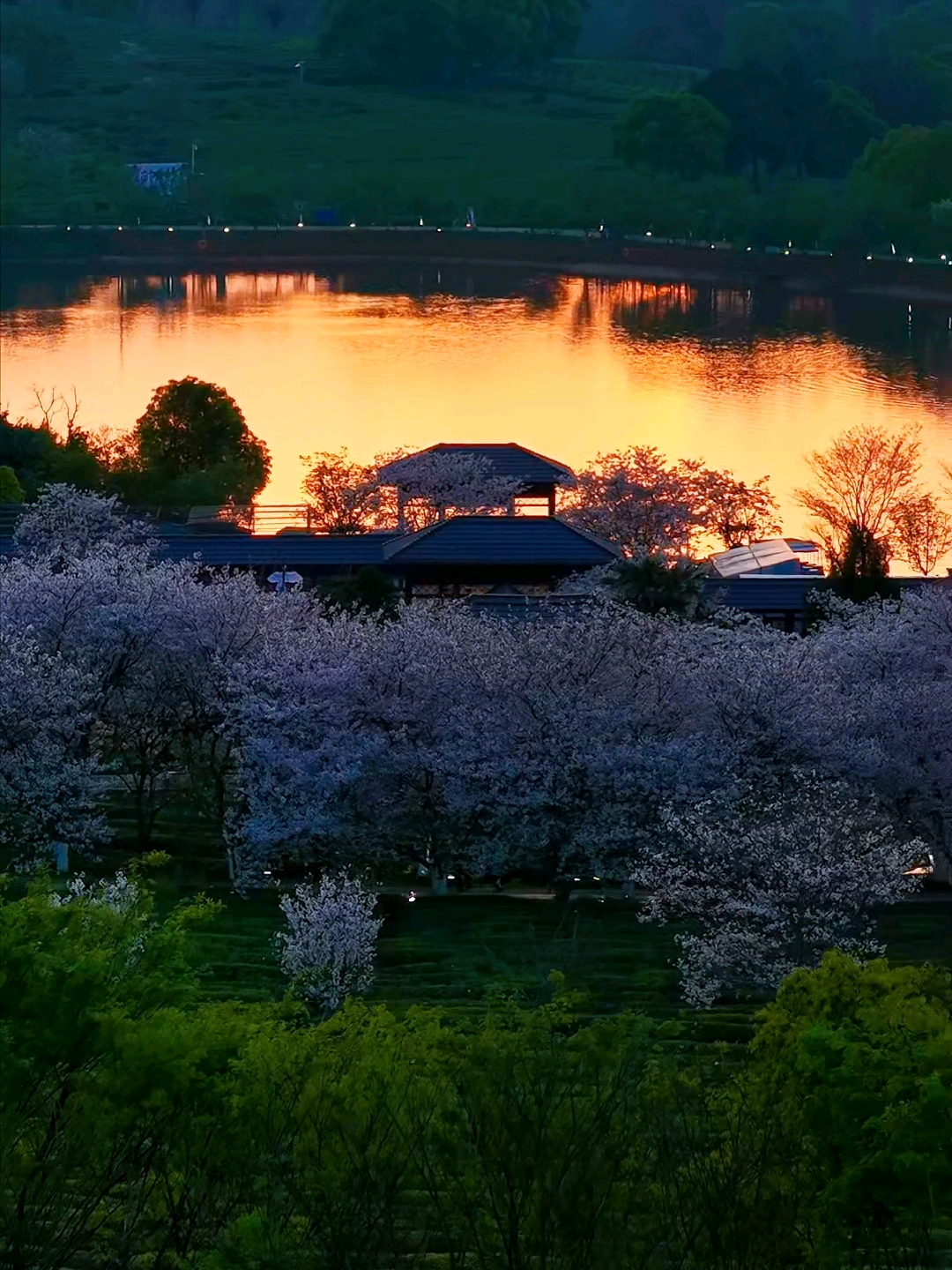 超治愈!当落樱遇见晚霞,南昌凤凰沟的金色黄昏,温柔得让人想私藏。