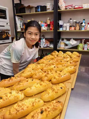 打了一个八斤重的面团,做些面包让哥哥带去学校