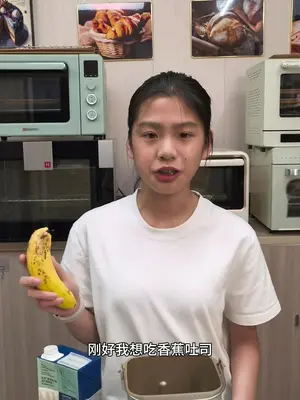香蕉吐司也太简单了吧,放学回来分分钟就把明天的早餐给搞定了。配方在视频里记得截图保存,百分百成功