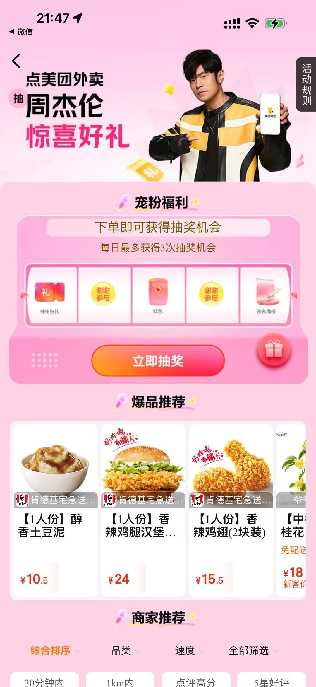 我嘞个美团外卖真是行动派来的!还有人不知道点美团外卖可以抽周杰伦惊喜好礼吗?即日起到3月22日,上美团/美团外卖App【杰伦】,就有机会获得美团外卖为大家准备的礼物哦~到底是什么,好难猜啊~️